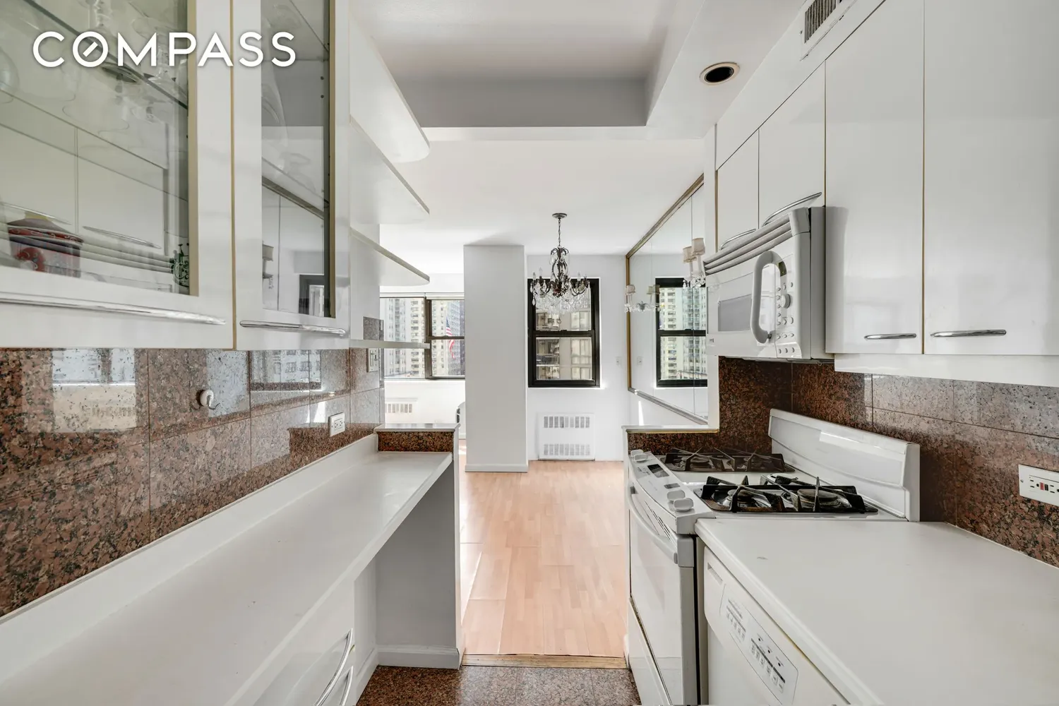 Previously updated with tasteful design choices, Apt. 5D currently sports a 30 foot living room expanse with an electric fireplace and separate windowed dining alcove big enough to seat 8-10 people. Should your lifestyle require a different layout, the kitchen can be opened up to the living room or the dining area enclosed to make an office, nursery or guest space.