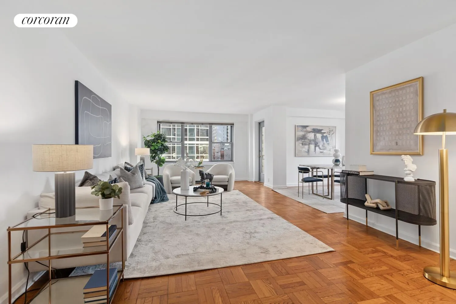 Boasting a coveted southeast exposure, it is flooded with natural light throughout the day.. Parquet hardwood floors throughout.