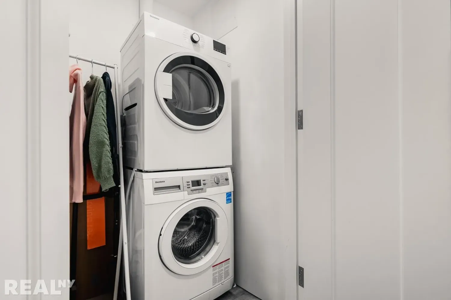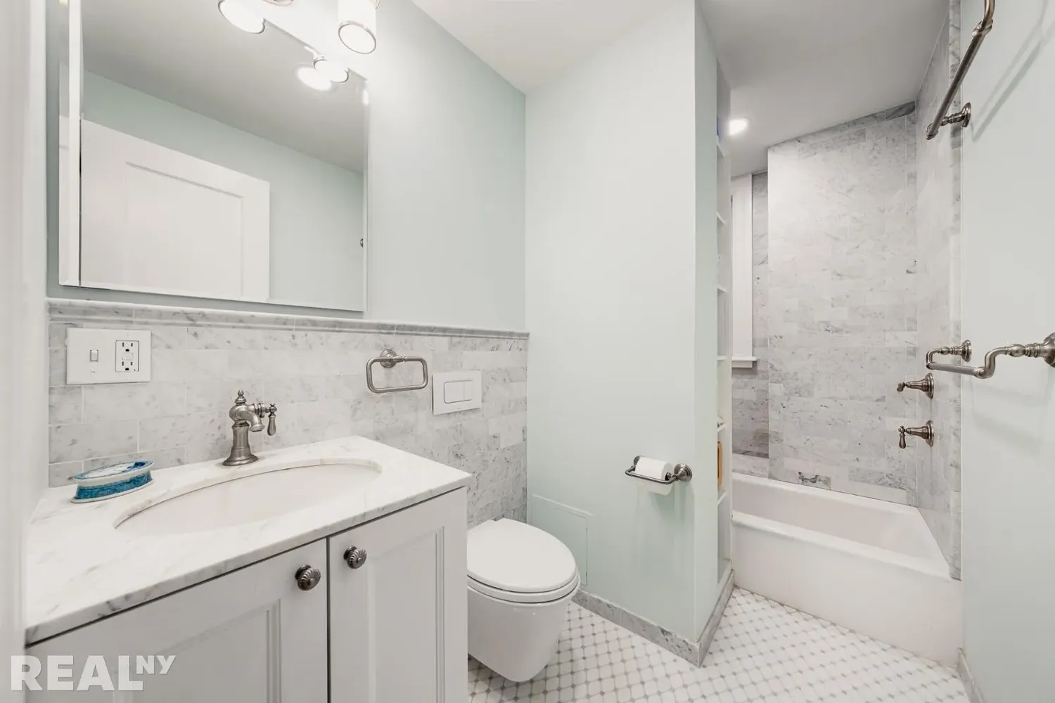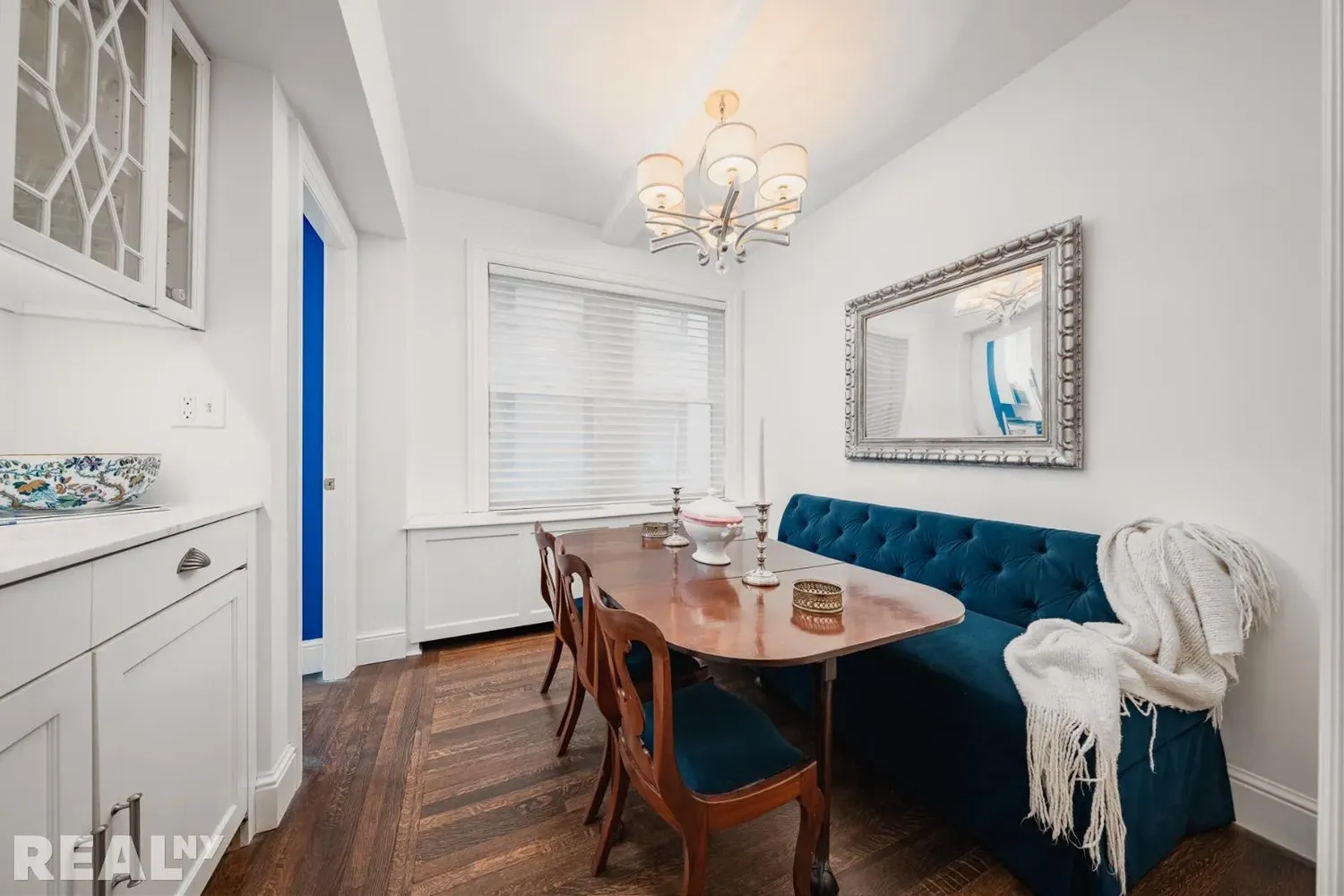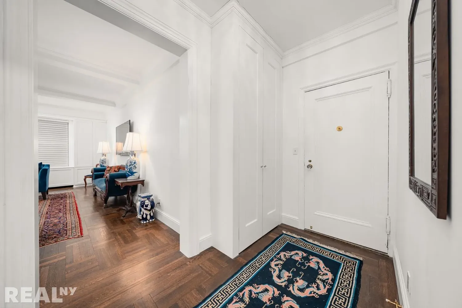 Thoughtfully renovated in 2019, this two- or three-bedroom two-bath apartment retains pre-war details, such as refinished hardwood floors and elegant restored mouldings, as well as new windows and new plumbing, electrical, fixtures (Kohler for plumbing), and appliances (Sub-Zero, Miele). The windowed dining room opens to the living room and kitchen but can be closed off for use as an office or third bedroom. The primary bedroom has a wall of closets plus a large laundry closet with washer and dryer, and its bathroom is en suite. The second bedroom has a full bathroom adjacent in the hallway, making it convenient for guests. Through-wall air-conditioning units (Friedrich) in each room are hidden by custom radiator covers.