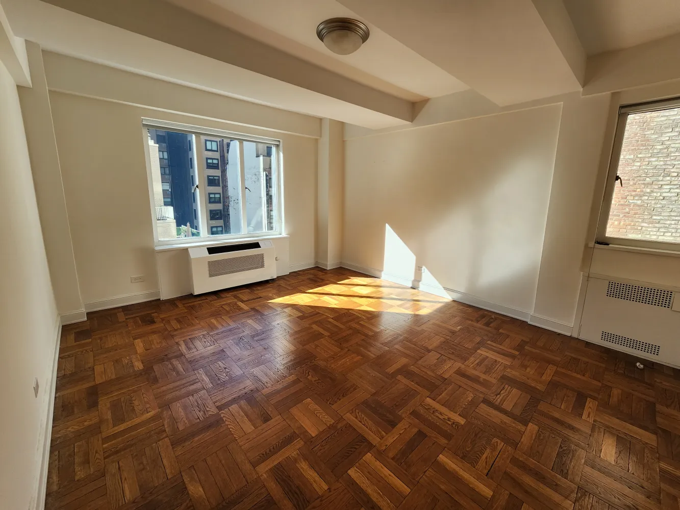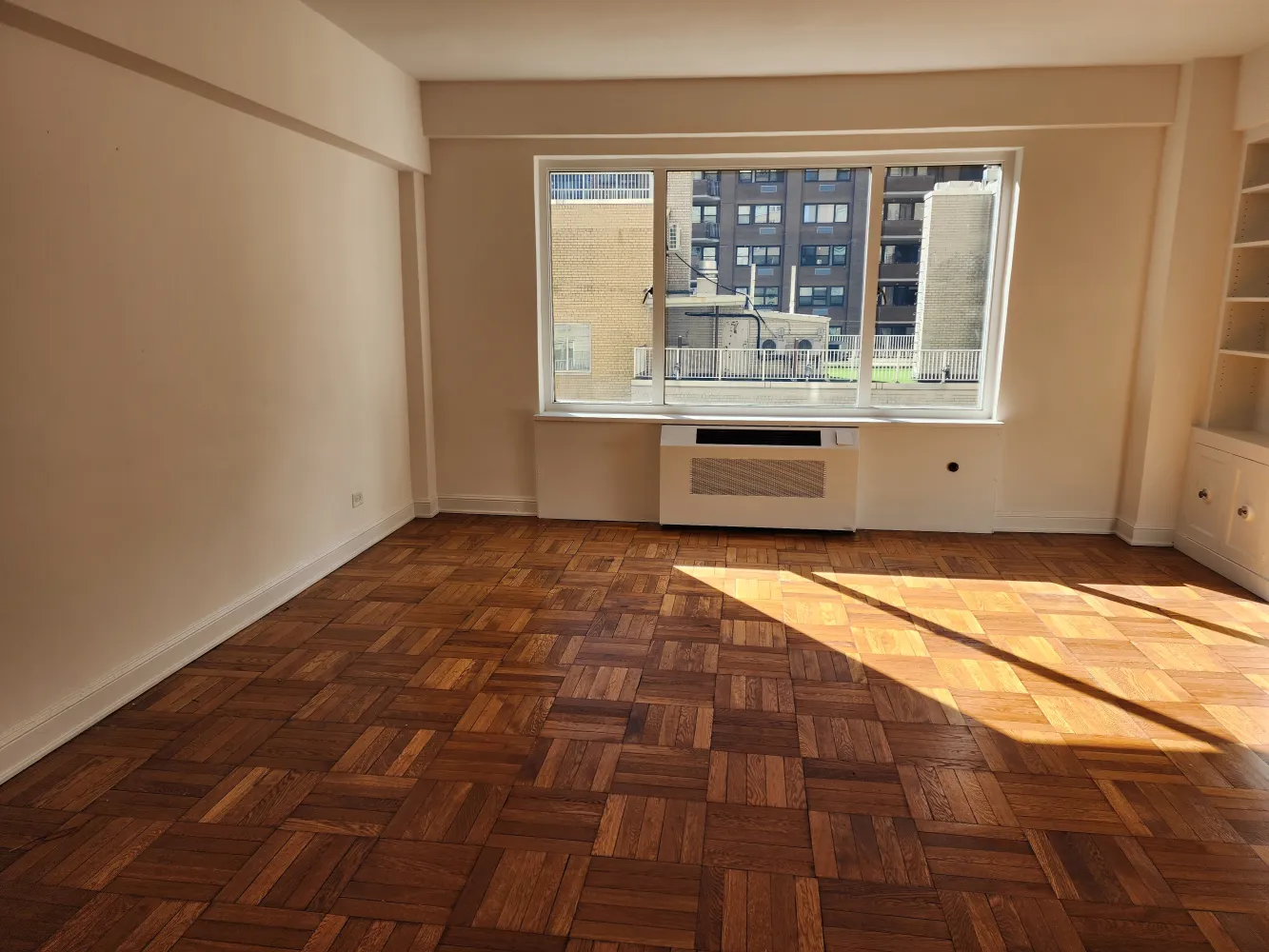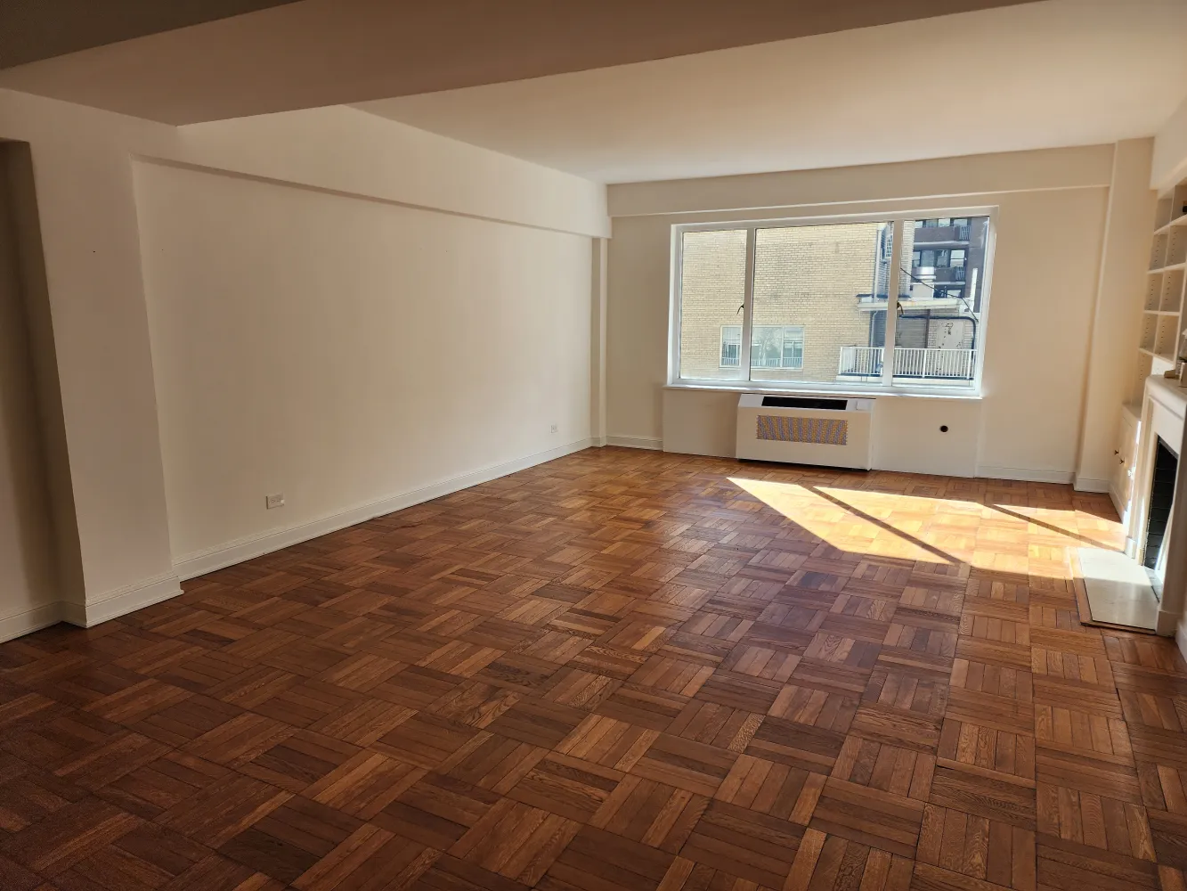 Βeautiful extra‐large sunny one-bedroom in prime Central Park South rental building facing the city. Huge living/dining room with a decorative fireplace, built-in bookcases, renovated windowed kitchen, large bathroom with glass stall shower and separate tub plus 7 closets.