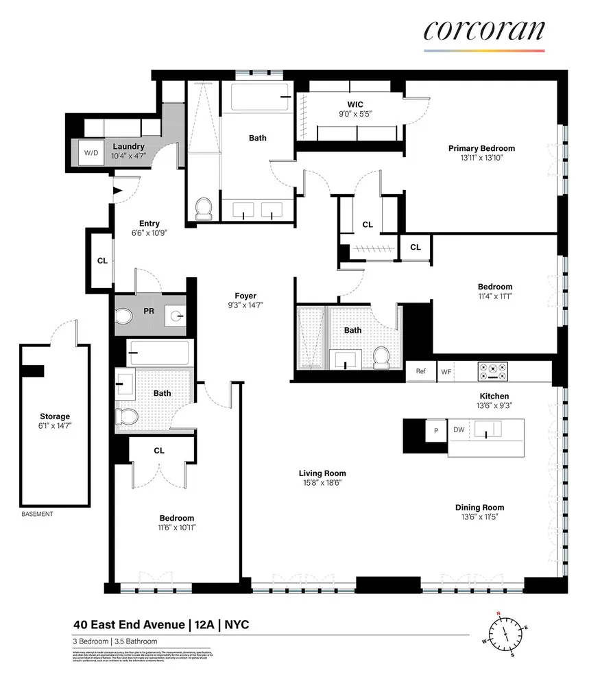 Residence 12A presents a half-floor, three bedroom, three and one half bath home. As you step into the gracious foyer, East River views welcome you, accompanied by abundant natural light streaming in through the oversized casement windows. This exceptional residence spans 2,230 square feet, boasting 10-foot ceilings, expansive oversized casement windows, Juliet balconies, custom moldings, 8-foot doorways, and white oak herringbone flooring throughout the main living areas.