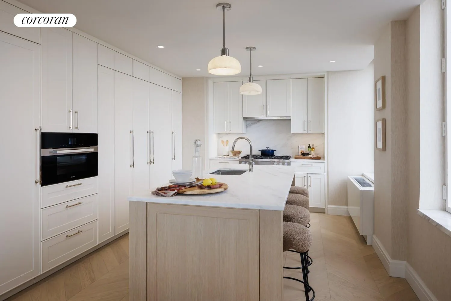 to Central Park. The gracious corner living room leads to the separate chef's kitchen featuring