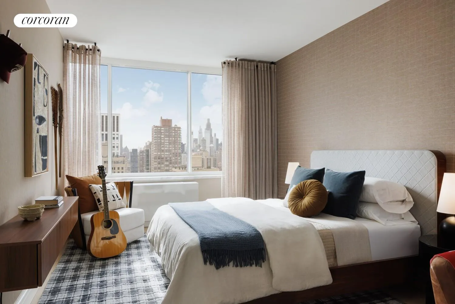 and elegant bay windows that frame the unobstructed city views spanning from the East River
