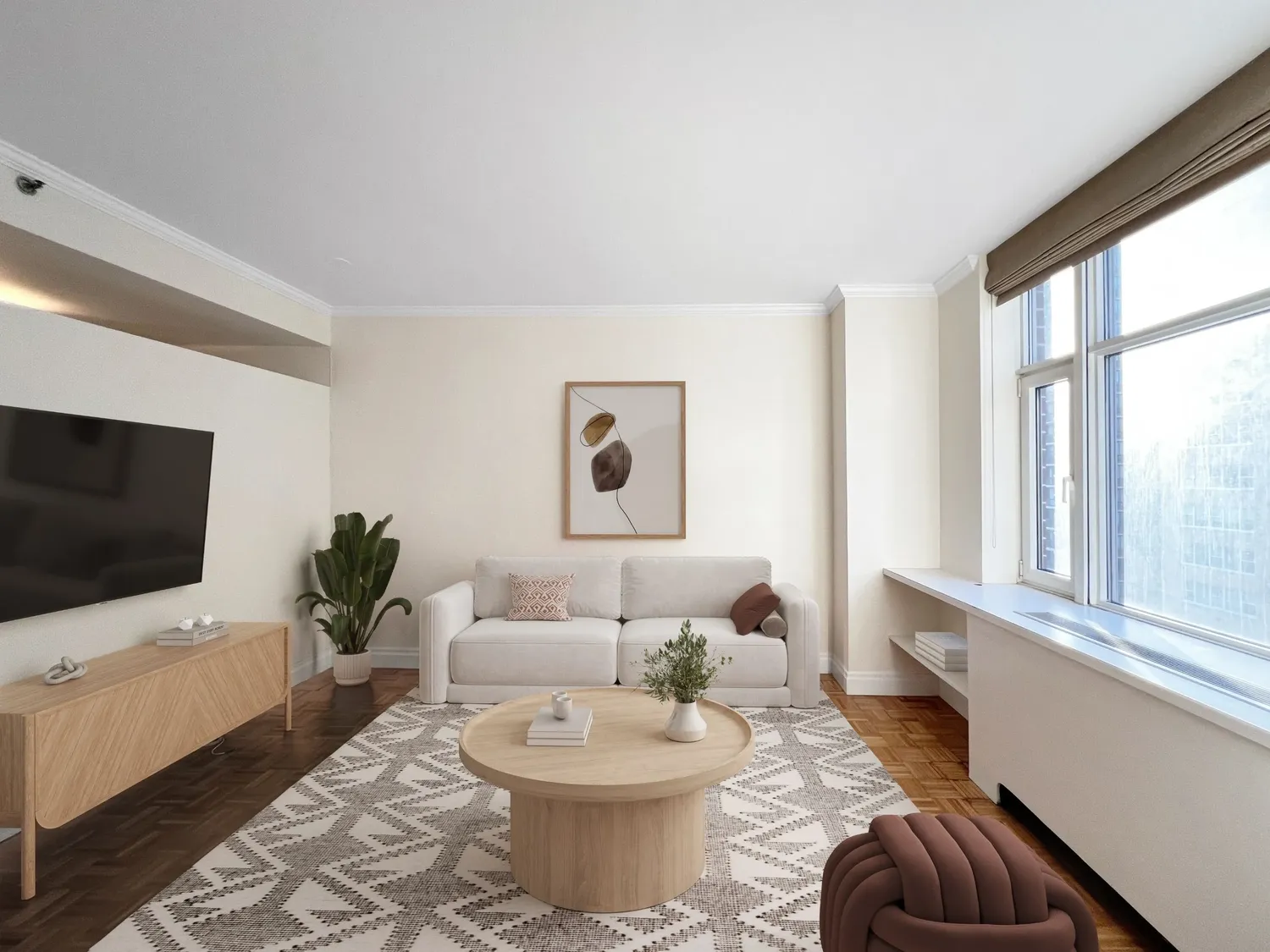 Experience luxury living in Residence 9B at The Impala, a premier full-service condominium nestled in the vibrant heart of Lenox Hill. This meticulously designed one-bedroom apartment boasts expansive oversized windows that flood the space with natural light, highlighting the gleaming hardwood floors throughout.