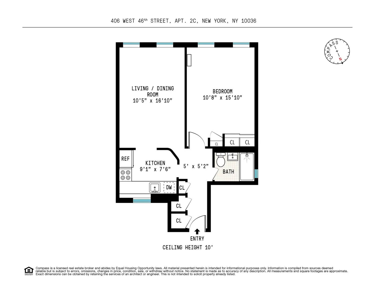 The building sits near the corner of 46th Street and 9th Avenue, moments from neighborhood highlights including: Schmakery’s, Galaxy Diner, The Marshal, Amy’s Bread, and Anejo. The apartment is a very short distance to Broadway theaters, Restaurant Row, the Hudson River esplanade, and major transportation hubs at Times Square & Port Authority Bus Terminal.