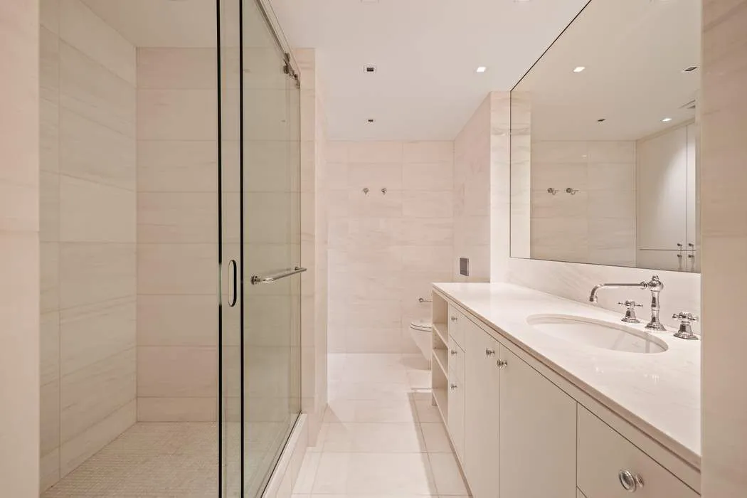 This flexible home is currently configured with two oversized bedrooms. The primary suite, with new windows, features an oversized custom walk-in closet and a newly renovated double marble bathroom. The contiguous bedroom has been turned into a private sitting room for the primary suite. The second bedroom includes a large walk-in closet and an ensuite bath.