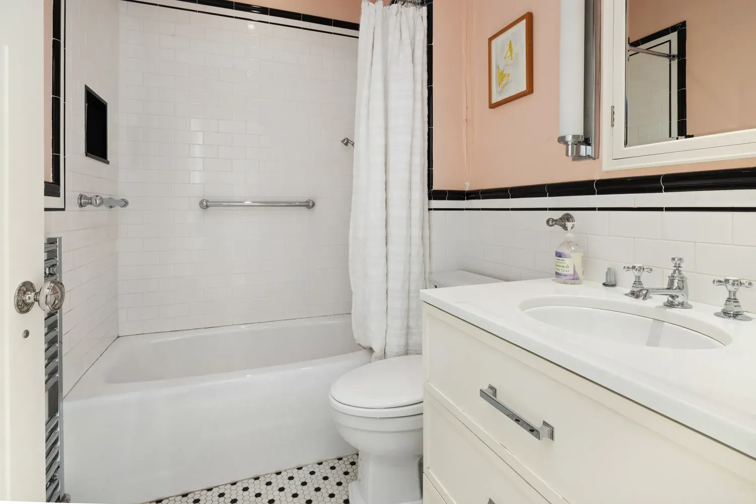 Enjoy the essence of Soho living in this authentic, prewar loft! A gracious foyer leads to an expansive open layout featuring a sleek, modern kitchen, an inviting living area, and defined spaces for dining and additional seating. The expansive living space is filled with natural light coming through three oversized east-facing windows, complemented by corner exposures to the south.Charming architectural details include exposed wood ceiling beams, industrial cast-iron columns, exposed brick walls, a wood-burning fireplace, and polished wenge hardwood floors.