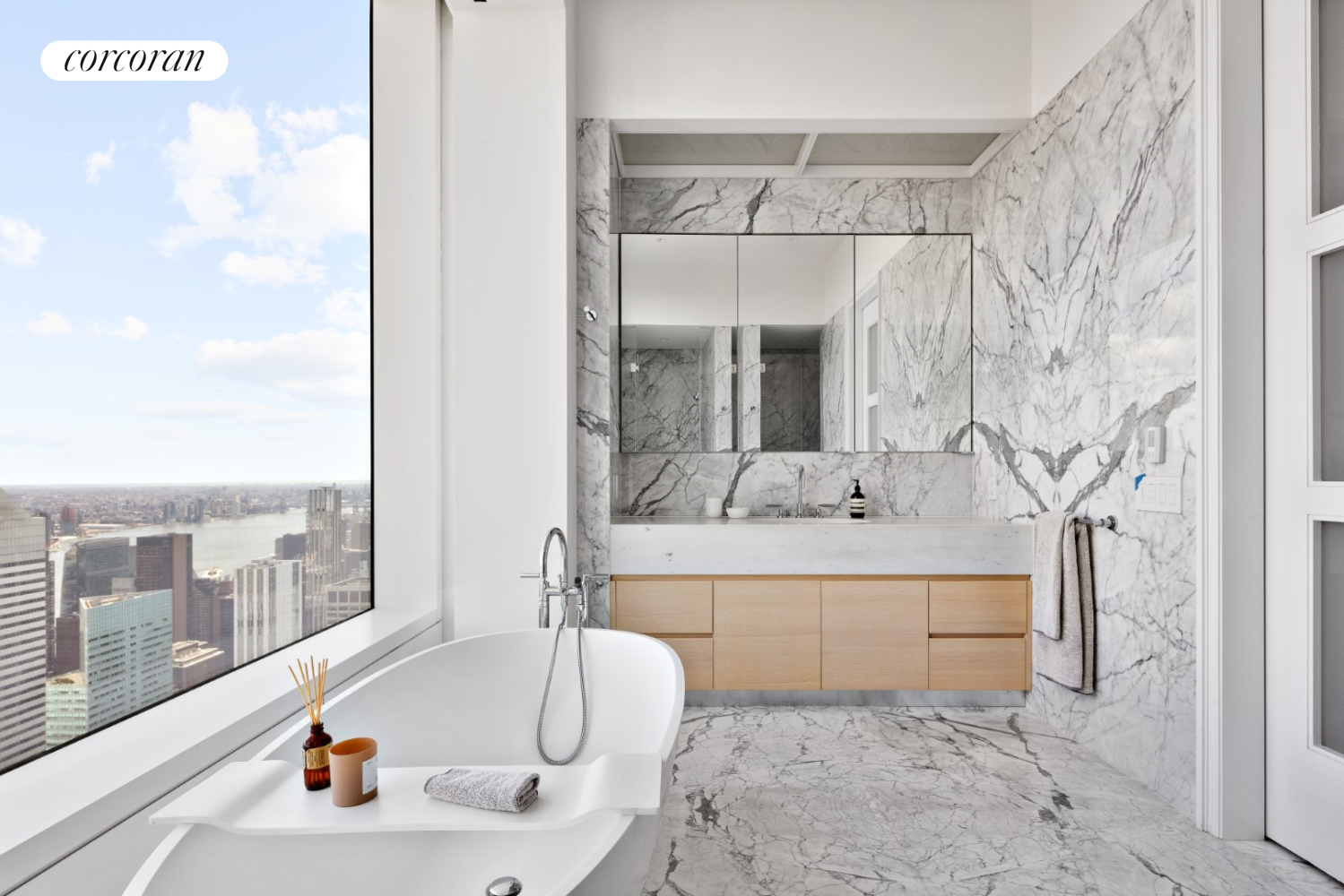 Soaring at an impressive elevation of over 725 feet above Park Avenue, this residence features awe-inspiring views (N, S, E) of the East River to the Atlantic Ocean, Central Park, and the Manhattan skyline framed by its iconic window seats.