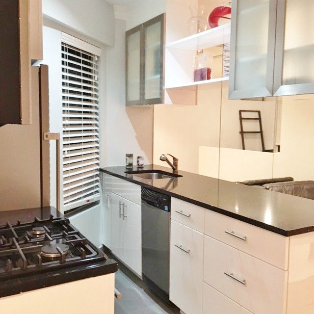 The apartment boasts a large windowed kitchen with stainless steel appliances (including dishwasher!), granite counter tops, breakfast bar and cool steel cabinets. The apartment layout is spacious and has a separate sleeping alcove for separation of living space and bedroom. There are closets and storage galore throughout the entire apartment, beautiful hardwood floors, a through-wall AC unit and a windowed renovated bathroom as well.