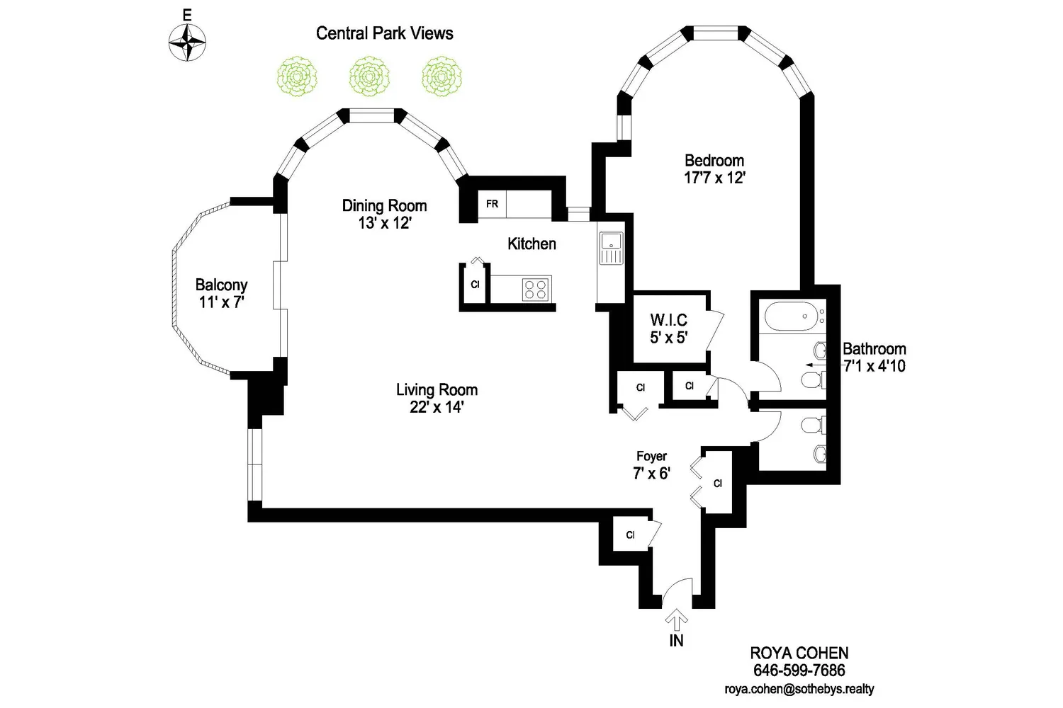 The generously proportioned 12’ x 17’7” bedroom easily accommodates a king-sized bed and features a walk-in closet, two additional closets, and its own distinctive bow windows overlooking the city’s most treasured green expanse.