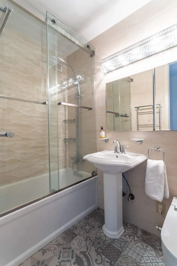 With a renovated windowed kitchen, one and a half beautifully updated bathrooms, hardwood floors, designer lighting, custom window treatments, and six spacious closets, this home is a rare blend of sanctuary and sophistication. A washer/dryer may be installed in the current powder room location with board approval.