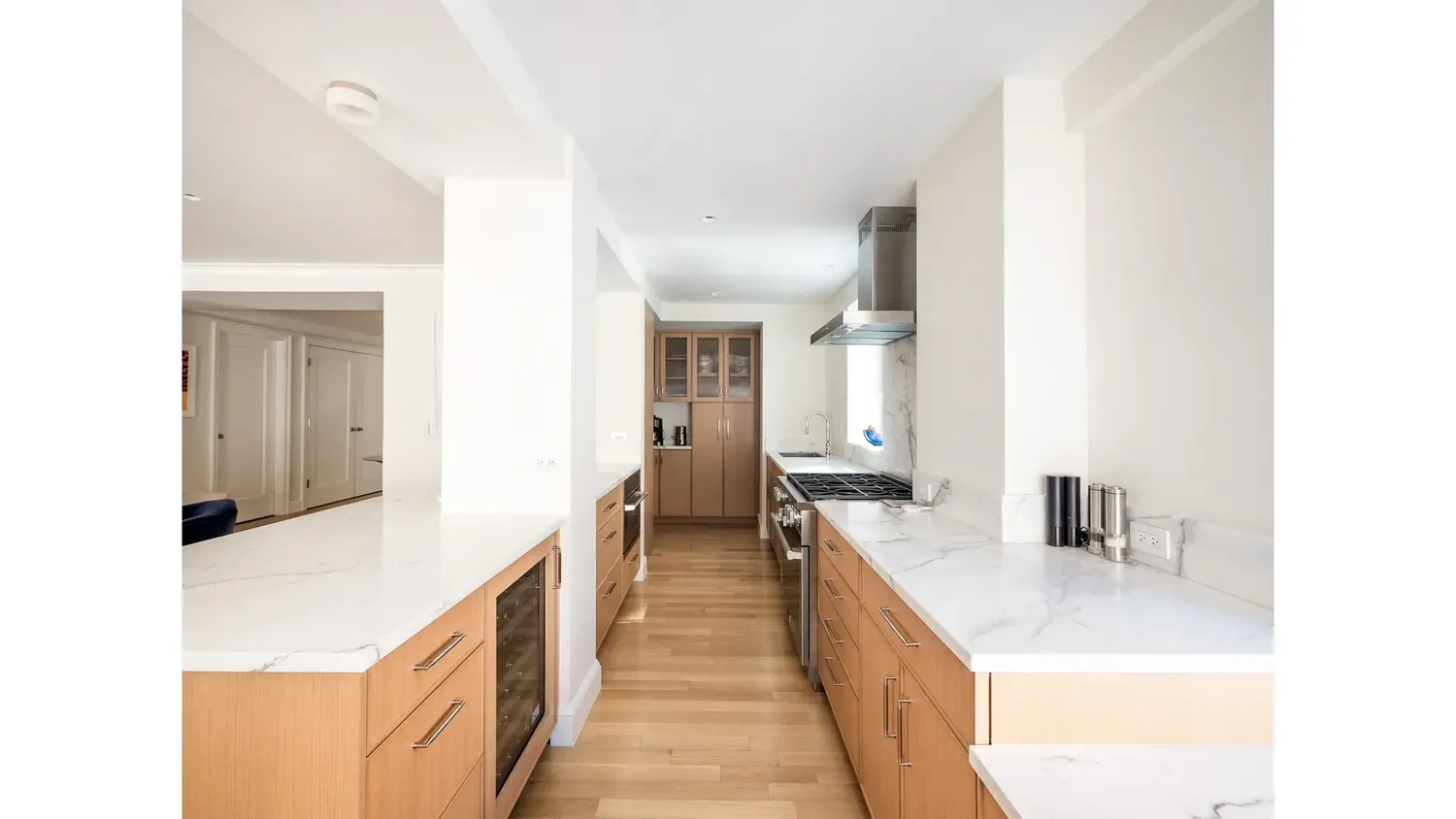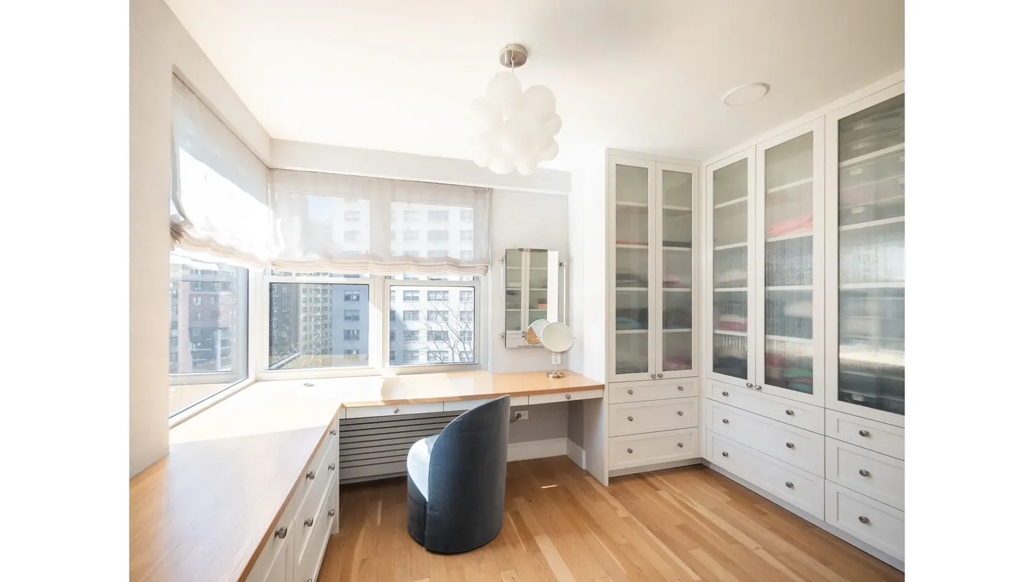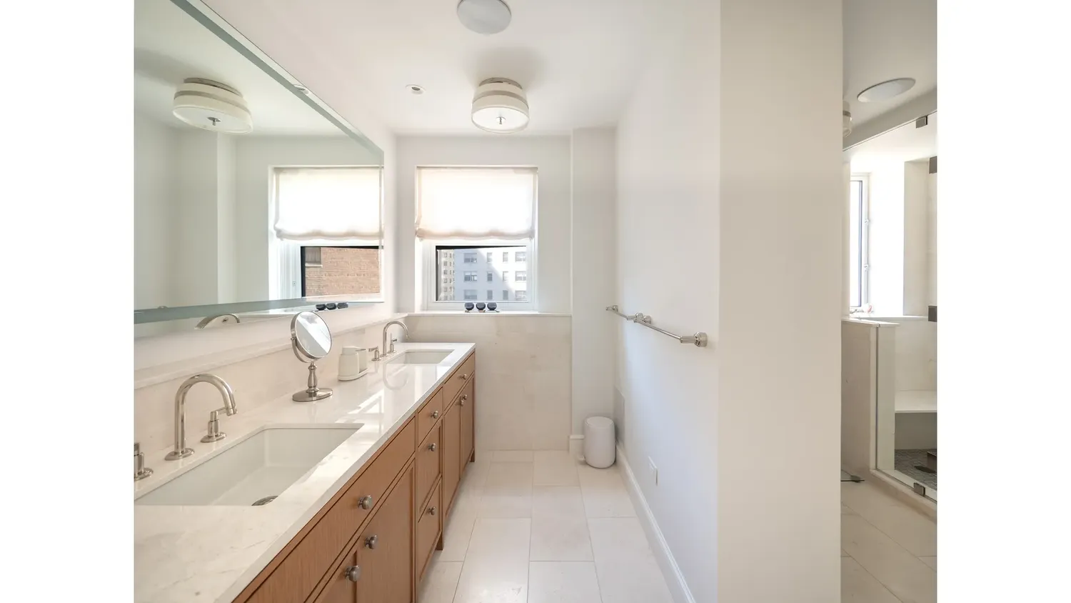 Designed for ultimate privacy, the secluded primary suite serves as a quiet retreat from the city. It is a true sanctuary, with his and hers closets, a windowed, spa-like marble bathroom with heated floors, and a dedicated dressing room with custom built-ins. Two additional oversized bedrooms offer generous proportions, one of which features its own elegant en-suite bath. Every one of the three full bathrooms has been meticulously renovated, ensuring modern luxury in every corner of the home.