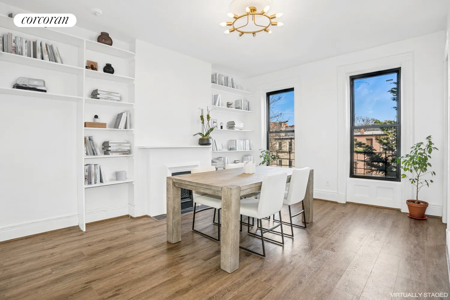The property features a timeless brownstone facade and an elegant stoop, meticulously maintained to preserve its historic charm. Although not officially designated as a historic house, it offers 1,443 square feet of buildable space, presenting significant value and potential. The current layout includes a three-bedroom, two-bathroom duplex on the lower levels and a two-bedroom, one-bathroom rental unit above, providing a versatile configuration that can be adapted to suit your vision, whether as a single-family home or maintaining the current setup.
