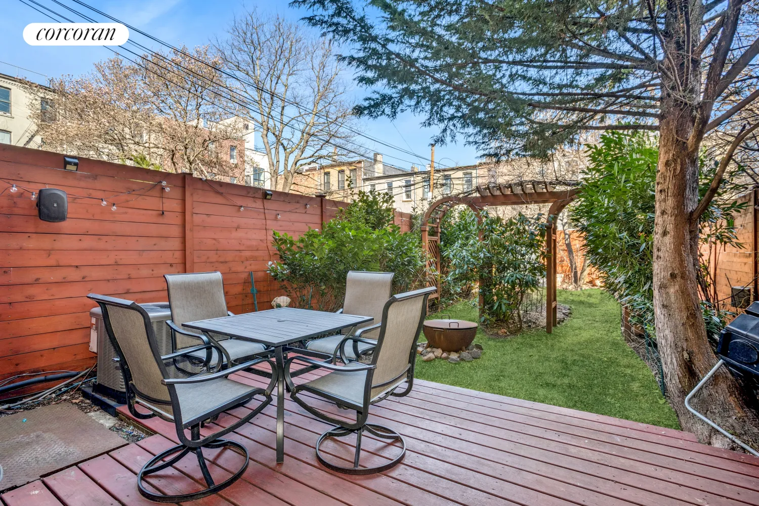 Inside, the home retains its original townhouse details, creating a warm and inviting atmosphere. With a 19.5" x 42" footprint and 2,457 square feet of usable floor area, there is ample space to customize and reimagine the interiors. The enchanting garden, complete with flowering perennials, a majestic evergreen tree, meandering paths, and a charming deck, offers a serene oasis amidst the city's hustle and bustle.