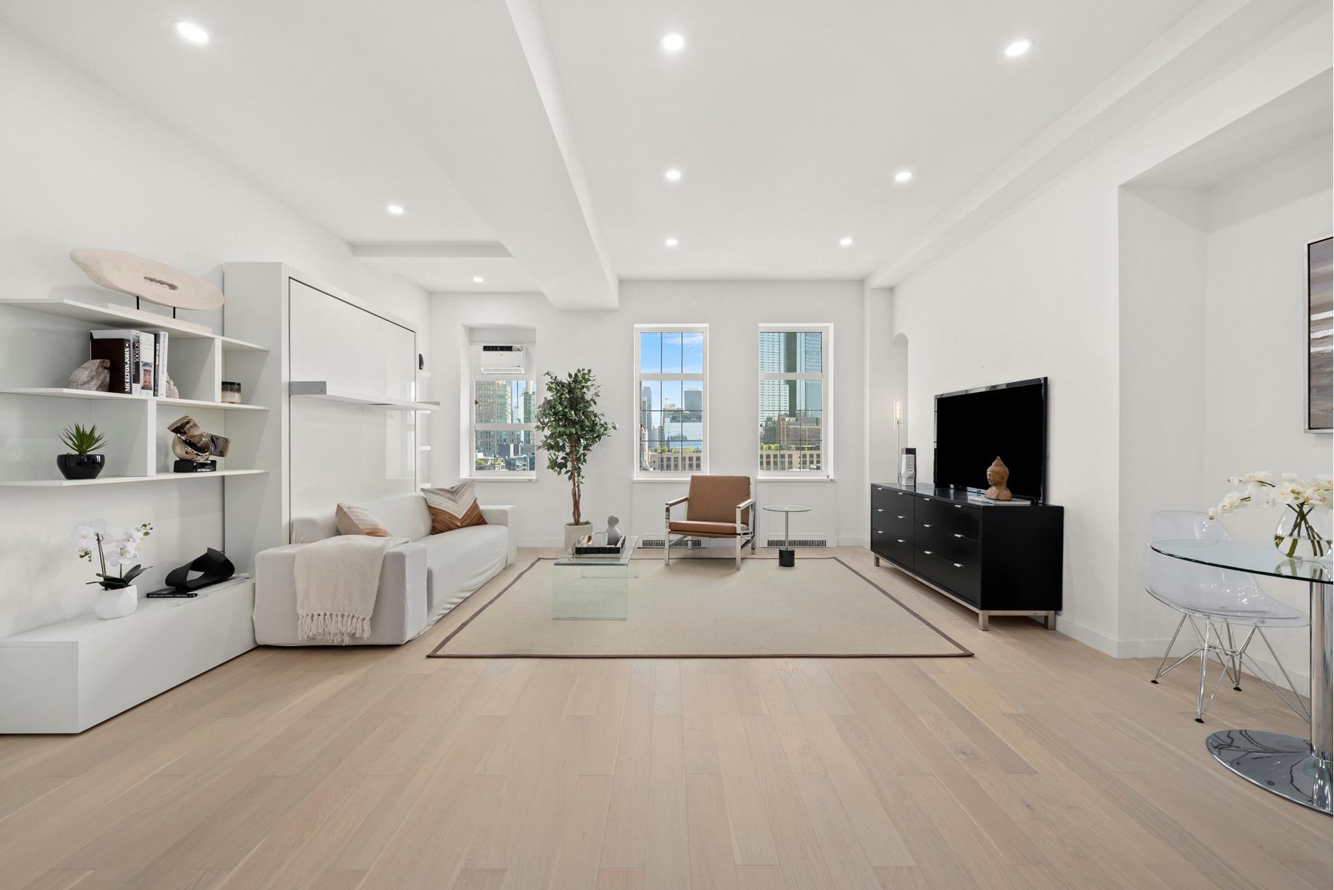 Immerse yourself in the open expanse of this mint-condition studio, where beautiful wide-plank floors guide you towards the expansive windows that reveal stunning views. Gaze out over Midtown's bustling cityscape, extending all the way to the gleaming marvel of Hudson Yards.
