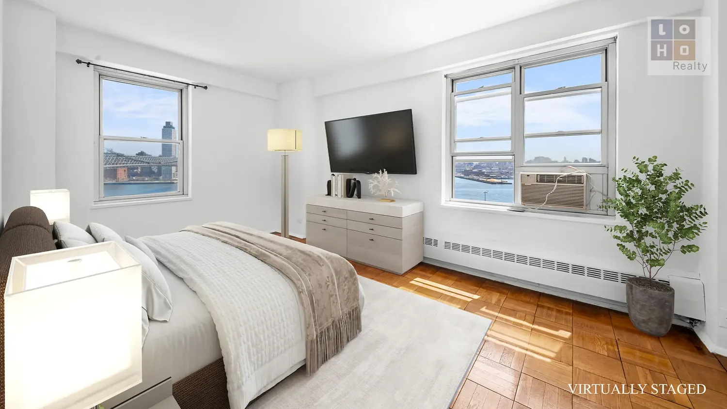 This expansive 1-bedroom home—the largest layout in the co-op at approximately 800 sq. ft.—showcases breathtaking views of the East River & Williamsburg Bridge Bridge from every room! Yes, really.