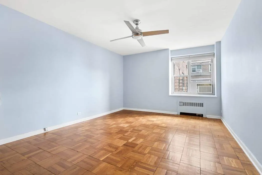 A gracious entry foyer with three closets creates an inviting arrival and excellent storage. The spacious primary bedroom features two deep closets, while the well-proportioned second bedroom benefits from a reconfigured entrance that enhances privacy and flow.