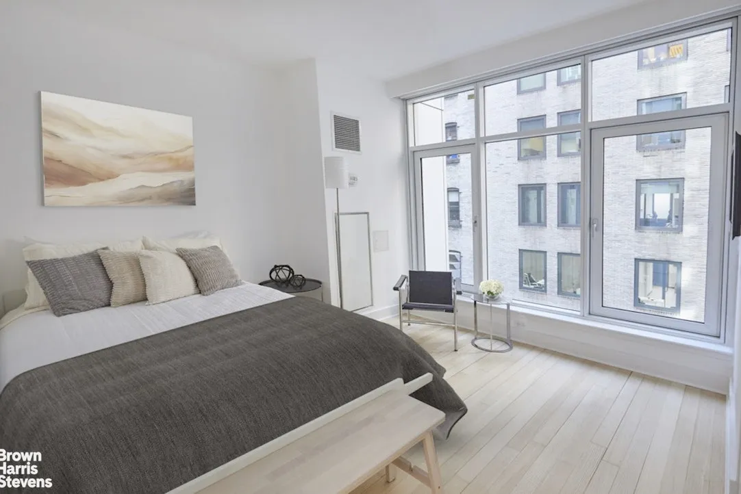 A newly installed Lutron lighting system provides state of the art ambience management with electronic shades throughout, including blackout shades in the bedrooms. For added comfort and convenience this home boasts 4-zone heating and air conditioning. There are new white oak floors, and the apartment's floor-to-ceiling windows compliment its nearly 10-foot ceilings - all adding to the overall loft-like feeling of openness. The spacious living room adjoins an inviting, comfortable dining room. This large 1,416 square foot home would be perfect as a primary residence, pied-a-terre or investment property.