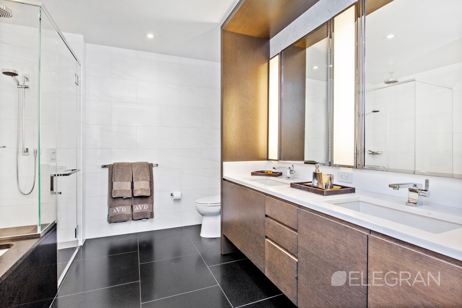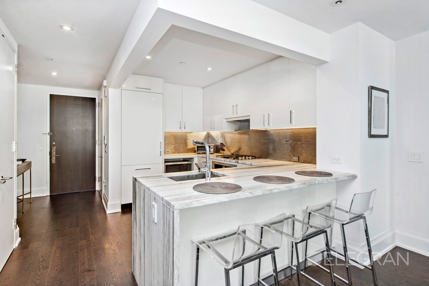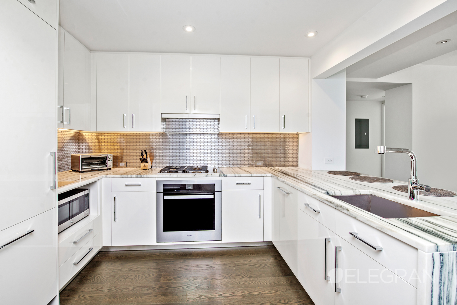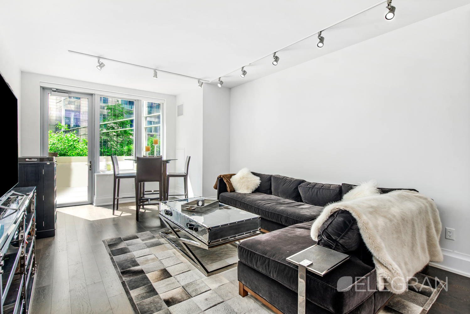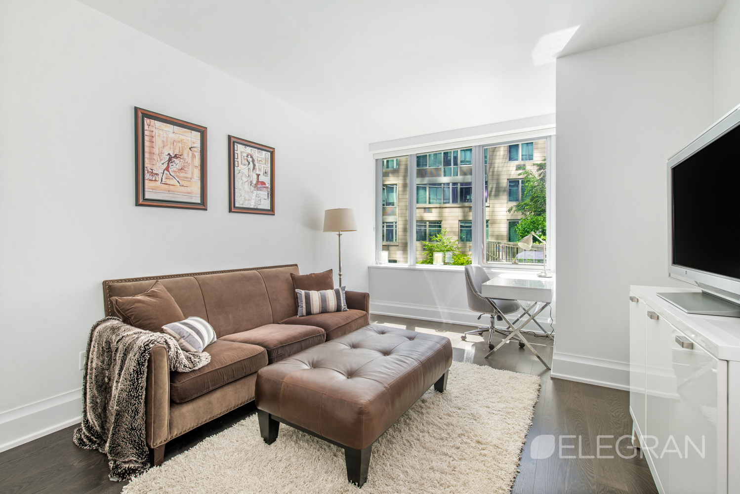 Elegant, expansive 2-bedroom, 2-bathroom home with a huge landscaped terrace (every New Yorker's dream) available in gorgeous One Riverside Park at 50 Riverside Boulevard. This 1410sf home boasts modern interiors crafted by Shamir Shah Design including custom wide plank oak flooring with a custom dark stain throughout, auto blinds, track lighting, custom closets, and a kitchen featuring state-of-the-art Miele appliances including a stainless steel gas cooktop and oven with a fully vented range hood, and a dishwasher as well as marble countertops and white lacquer cabinetry. The fabulous master bathroom includes double sinks, a Zuma deep soaking tub, and a glass-enclosed shower with rainfall showerhead and Dornbracht polished chrome fixtures. The second bathroom also includes several luxury features including a white polished lacquer vanity. The apartment also comes with a Miele washer and fully vented dryer and a 20sf storage bin so storage will never be an issue. One Riverside Park features La Palestra a 40,000-square-foot athletic club and spa with a 38-foot rock-climbing wall, a 75-foot swimming pool, basketball and squash courts, two-lane bowling alley and lounge, and a golf simulator, as well as several spa services. There is also a catering kitchen, children?s playroom, screening lounge, and much more.