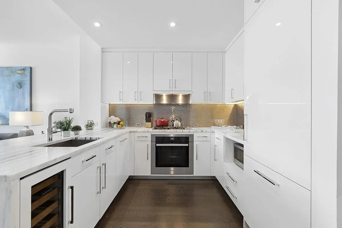 This gorgeous home offers generous sized rooms, ample closet space including walk-in closets, Wide plank oak flooring with a custom dark stain outfitted throughout the residence, a Miele washer and fully vented dryer and a gourmet kitchen with high-end finishes. The distinct kitchen is outfitted with white lacquer wall cabinetry, Marble stone slab countertops and stainless steel tile backsplash. Top of the line appliances include a Miele stainless steel gas cooktop and oven with fully vented range hood, a Miele refrigerator and freezer, a Miele dishwasher, Meile Washer / Vented Dryer and GE microwave. The Luxurious and modern Primary Bathroom is equipped with a dark oak vanity featuring double sinks, marble countertops and walls, a Zuma deep soaking tub, a glass enclosed shower with rainfall showerhead and Dornbracht polished chrome fixtures. The second bathroom is bright and classic with glossy white wall tile and white polished lacquer vanity. The elegant powder room features a rich palate with an ebonized oak vanity, black marble countertop, slate grey quartzite stone floor and an iridescent accent wall.