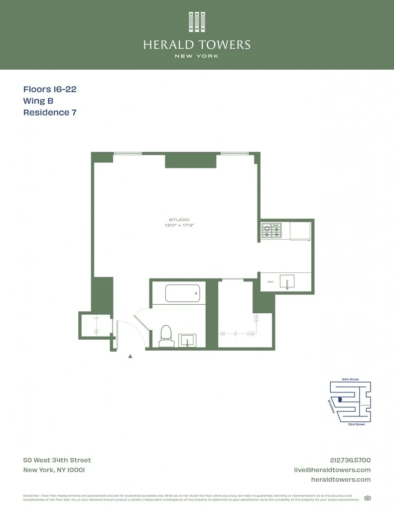 Now Leasing. In-Ρerson and Virtual Tours Available. ᏞARGΕ STUDIO WITH NEWLY RENOVATED APPLIANCES AND BIG WALK IN CLOSETNo Security Deposit for Qualified ApplicantsThe Guarantors Accepted; *We will reimburse part of The Guarantor's fee for qualified applicants*Herald Towers is a million square foot residential gem in the heart of New York City's Herald Square. Soaring 25 stories high, the building houses 690 luxury rental homes. Residences feature luxurious new kitchens and bathrooms and include over-sized closets.Ideally located, Herald Towers is nestled where nearly all of New York's major subway lines converge and is only a couple of blocks away from the PATH Train, Penn Station, Port Authority and Grand Central.Brand New Amenities:- 24-Hour Doorman & Concierge- 25th Floor Sky Bridge Residents Lounge & Solarium- Billiards Room- Café Bar- Library & Co-working space- Rooftop Terrace with Lounge Seating and Iconic Manhattan Skyline Views- Brand New State of the Art Fitness Center with Peloton Bikes- Complimentary Fitness Classes- Laundry Room & Service- In-House Dry Cleaning and Tailoring- Wifi Throughout Common AreasPlease call the leasing department for further details. Walk-ins welcomed; no appointment needed!Leasing Department Hours:Monday – Friday 10:00am to 6:00pm, Saturday 10:00am to 5:00pm, Sunday 11am - 4pm*Last tour 30 minutes before closing*Restrictions may apply. Inquire for more details.*Price shown is Base Rent. Residents are required to pay: At Application: Application Fee ($20.00/leaseholder, nonrefundable); At Move-in: Security Deposit (Refundable) (100%/unit); Monthly: Electric-3rd Party (usage-based). Please visit the property website for a full list of all optional and situational fees. Floor plans are artist’s rendering. All dimensions are approximate. Actual product and specifications may vary in dimension or detail. Not all features are available in every rental home. Please see a representative for details.