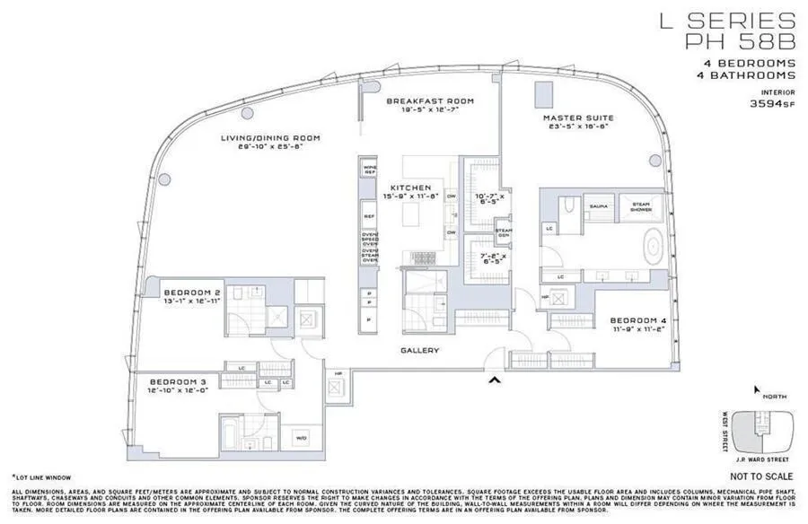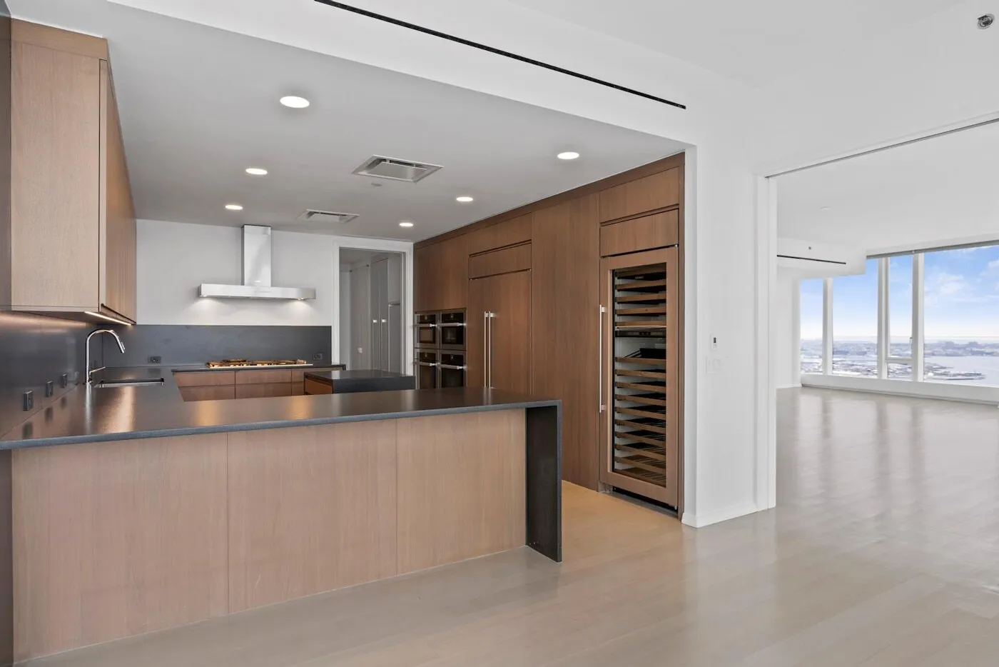 Εxquisite four‐bedroom penthouse. Ꮮocated on the 58th floor, this unit offers floor-to-ceiling windows, that sets the scene with bright, natural light and spectacular North, West and South views. The open living and dining floor plan is great for entertaining. The unit includes a separate breakfast room located off the kitchen, which features custom-stained cabinetry, granite countertops and a waterfall island with appliances from Miele and Sub-Zero. The master suite features multiple closets and a spa designed en-suite bathroom with a double, marble vanity, radiant floor heating, glass rain shower and separate soaking tub, and high-end finishes such as Toto and Hansgrohe. This unit also includes en-suite bathrooms for two additional bedrooms and an in-unit washer and dryer.