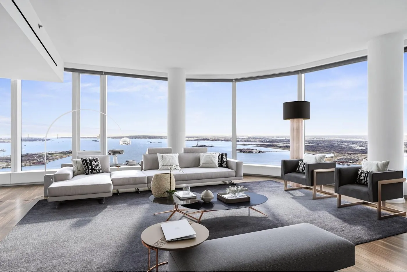 50 West, a 64-story residential tower located in the center of the New Downtown, features unparalleled views of the New York Harbor, the Hudson and East Rivers, the Statue of Liberty, and Ellis Island. Internationally-acclaimed architect Helmut Jahn has designed the approximately 780 foot tall skyscraper to feature floor-to-ceiling curved glass windows. The expansive interior layouts, ranging from one to five bedrooms and featuring an array of duplex and double height spaces, were designed and finished by Thomas Juul-Hansen. Four floors of the tower are devoted to state-of-the-art amenities: an immense Fitness Center, the beautifully-appointed Water Club, unique amenities, and The Observatory at 50 West Street, a spectacular 64th floor outdoor entertaining space with seemingly infinite views of New York and beyond.