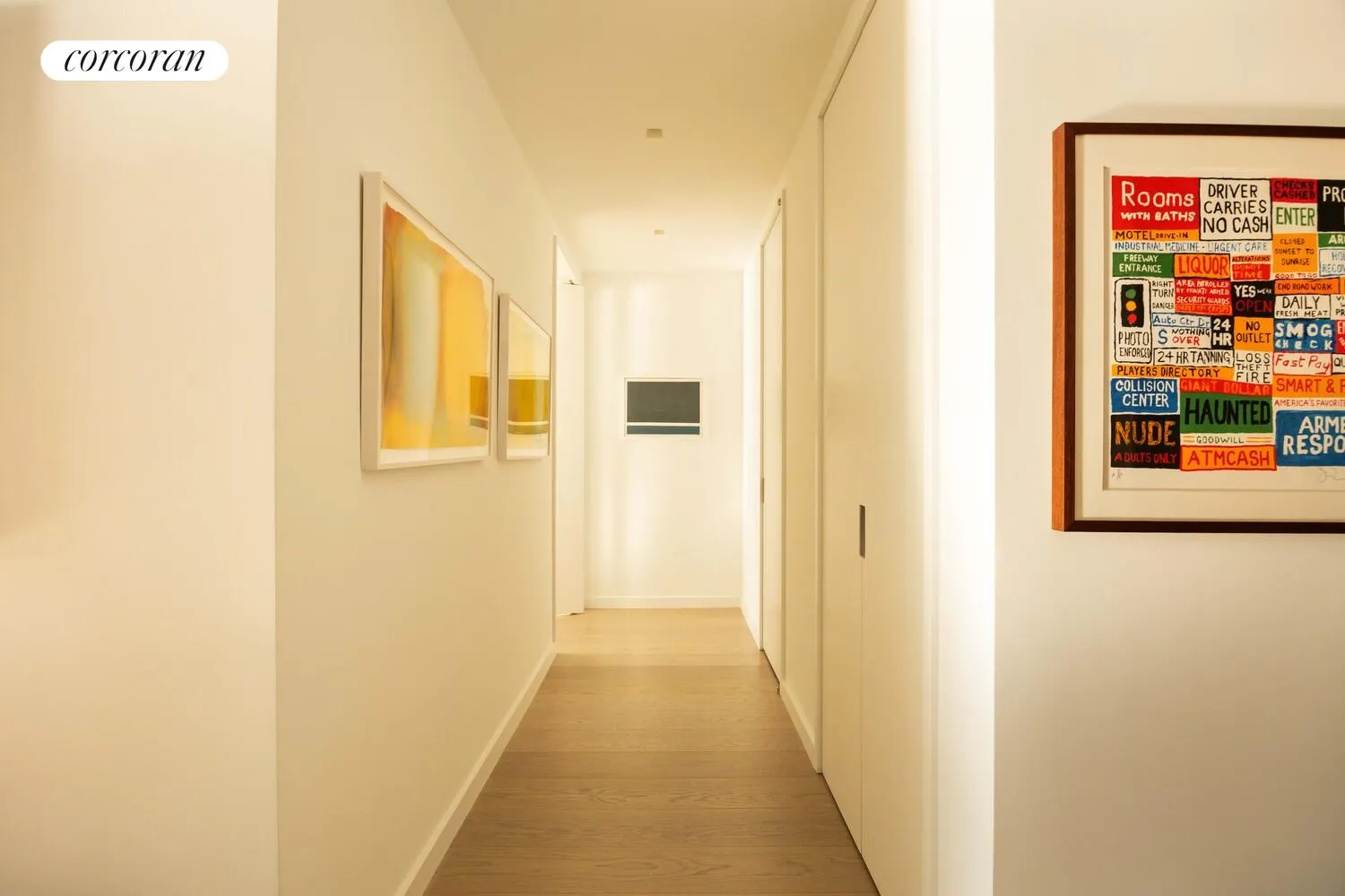 Additional features include a powder room finished in vein-cut Grigio Onyx, generous closet and storage space, a premium stacked washer and dryer, limewashed walls throughout,, and a state-of-the-art home automation system by Kraus Hi-Tech, including custom automated blinds,.