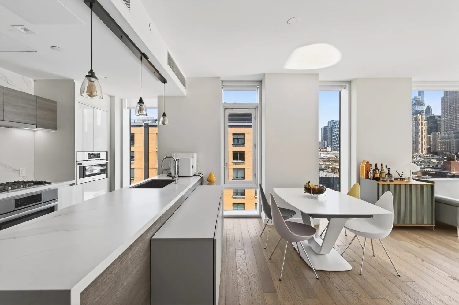 Top of the line and best in class, Apartment 14A at the highlу acclaimed Charlie West is a sun-flooded, view-driven two-bath home just below the penthouse. Spanning 1,165 sq ft with 9-foot ceilings and floor-to-ceiling windows, the open living and dining areas showcase sweeping Midtown Manhattan views, offering the best views in the building.