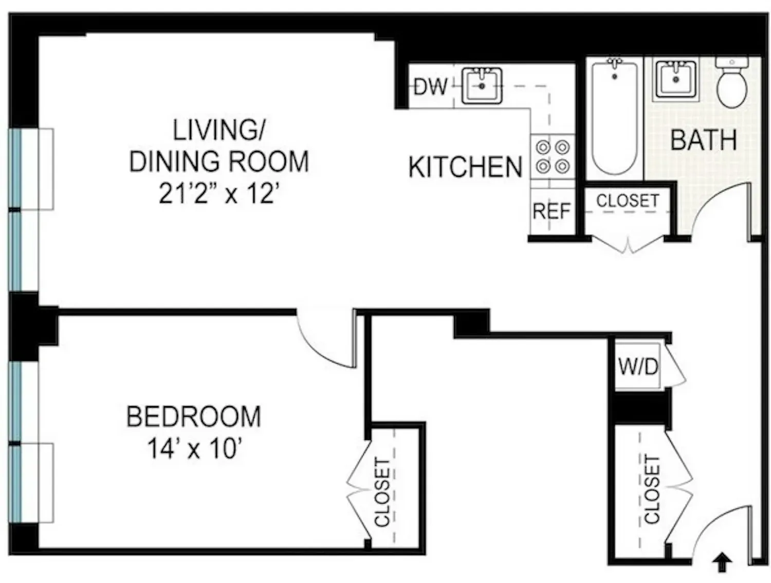 This is the best-priced south-facing one-bedroom condominium with an in-unit washer/dryer and brand-new HVAC in prime Hell's Kitchen. Sunlight is abundant throughout the day from oversized south-facing windows, illuminating both the spacious living area and king-sized bedroom.