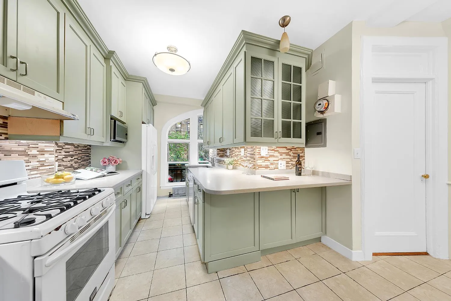 The kitchen is a true standout, with abundant cabinetry and generous counter space. The adjacent small bedroom can also function as an office space, exercise room or walk-in pantry.