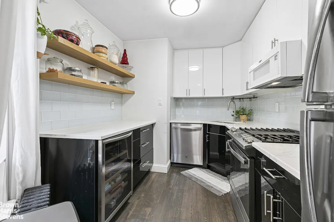 Perched on the fifth floor of a well-maintained prewar walk-up, this residence offers a rare combination of space, natural light, and functionality. The oversized living room easily accommodating both a full seating area and a separate dining space, with multiple windows bringing in excellent western light.