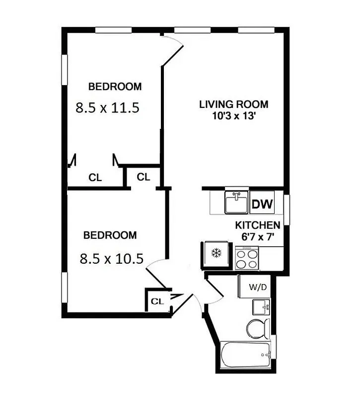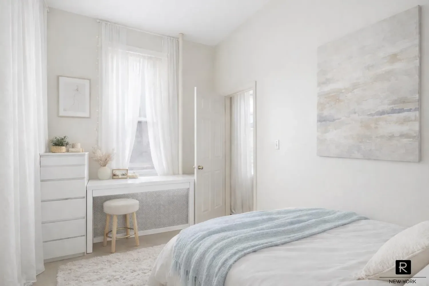 Welcome to Apartment 2A, an efficient two-bedroom, one-bath residence located just one short flight up. Featuring high ceilings, just under 10 FT, windowed bath and kitchen equipped with stainless steel appliances including dishwasher. Apartment has 7 windows throughout.