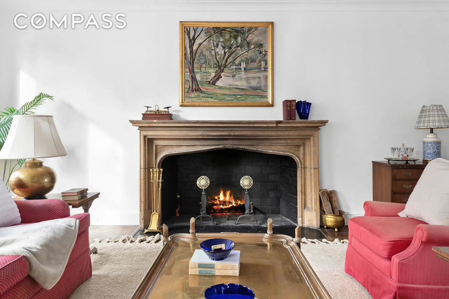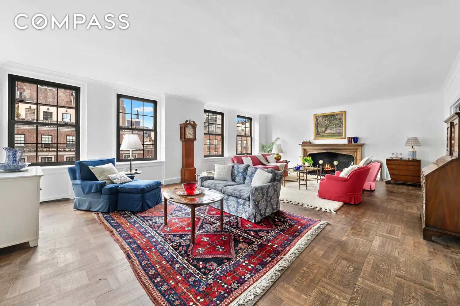 Enter from a semi-private elevator landing shared with only one other residence into a grand entry foyer, setting the tone for this timeless home. The double-width living room, bathed in southern light from the 15th floor, is anchored by a rare double-wide, wood-burning fireplace—the only one of its kind in the building—and showcases charming open city views.