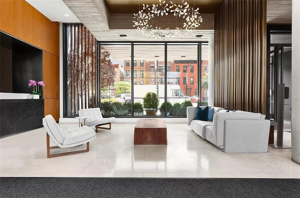 Welcome to a stunning one-bedroom, one-bathroom that features towering 11-foot ceilings, carefully designed with organic, natural features, and high-end fittings. Modern open floor plans combine beautifully with wide-plank white-washed oak flooring. You will enjoy catching expansive views of the area and the picturesque building through large windows. The gourmet kitchen exudes elegance with its custom grey lacquer cabinetry, white Carrara marble counters and backsplash, accents of lime-washed walnut, fully integrated Miele appliances, and a gorgeously designed custom kitchen island with waterfall Carrara marble that provides extra countertop and storage. Savor the convenience of a central climate control system and a full-size washer and dryer. Finally, another bonus: this home comes with a transferable storage unit, and the building tax abatement is still in effect, expiring in 2043. Ideal first-time residence or investment! Located in Prospect Heights, this innovative 22-acre project was envisioned and developed by renowned architect Frank Gehry. Beautifully designed by COOKFOX, the Vanderbilt offers a rare opportunity to live in the heart of New York’s newest park. This living experience goes above and beyond expectations, nestled amid 350,000 square feet of lush parkland with features like dog runs, open lawns, basketball courts, and children’s play spaces. Savor 10,000 square feet of unmatched amenities, such as white-glove treatment, door service available around the clock, a library hand-picked by McNally Jackson, a workout center powered by The Wright Fit, and a lounge complete with a catering kitchen. Enjoy the kid-friendly play area, pet grooming area, and amazing rooftop terrace with views of the city and common gardens and courtyard areas.