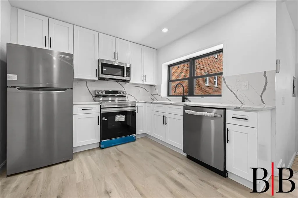 We are most pleased to present this amazing fully renovated 4 bedroom (2 bedroom on top floor and 2 bedroom in walk-in level) cape style room in the desirable Canarsie area. Amazing kitchen with high end chef's kitchen, quartz countertops, stainless steel appliances, and large bedrooms throughout. Two modern bathrooms with European tile and energy efficient ductless air/heat units throughout. Remarkable massive front yard and extra wide private driveway. A bonus shed is included as well. Ideal for entertaining and barbequing in this private retreat. Close to major shopping BJ's wholesale club, health clubs, various houses of worship, and many other fine retail stores. Easy access to mass transportation L Train@Rockaway Parkway station and multiple bus lines. Floor area ratio is strong which would allow for additional square footage to be built. Please schedule an appointment for this gem!