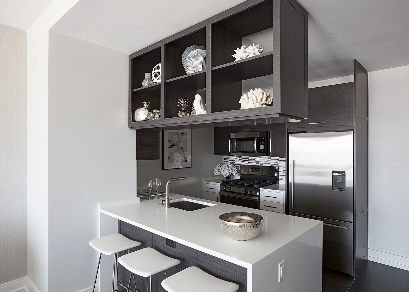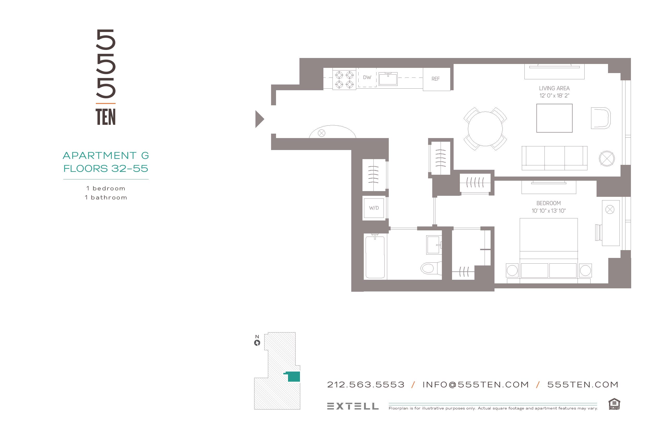 With sweeping views of the city from sunrise to sunset 555TEN towers over the new West Side. 56 floors of loft, 1, 2, and 3 bedroom luxury midtown rentals raise New York living to a new level. These spectacular apartments for rent in Manhattan offer rich wood flooring, stainless steel appliances, sleek Porcelanosa-tiled bathrooms and washer/dryer in every residence. And, the Extell Choice gives residents the opportunity to choose either a dark or light interior color scheme for flooring, kitchen cabinets and bath vanities.