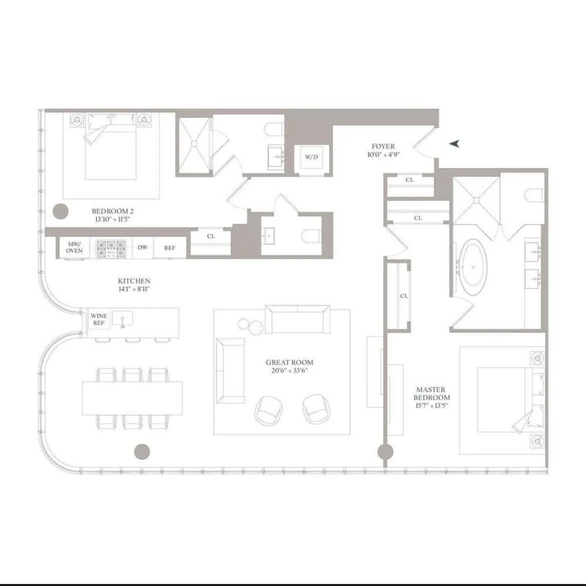 Welcome to Residence S-8C at 565 Broome SoHo: Enviably situated at the southwest corner of the South Tower and wrapped in floor-to-ceiling glass, this jaw-dropper offers nearly 1,700 square feet of impeccably designed living space, including 2 bedrooms, 2.5 bathrooms, 10-foot ceilings and 6-inch wide plank white oak flooring throughout. With south and west exposures, this home is drenched in natural light and offers enchanting views of the Manhattan skyline, Hudson River, and New York Harbor. A formal entry foyer leads to an expansive 20'6" x 33'6" Great Room enveloped by floor-to-ceiling glass and an open windowed kitchen designed with both practicality and aesthetics in mind.