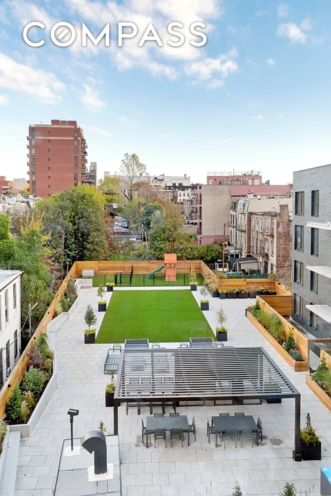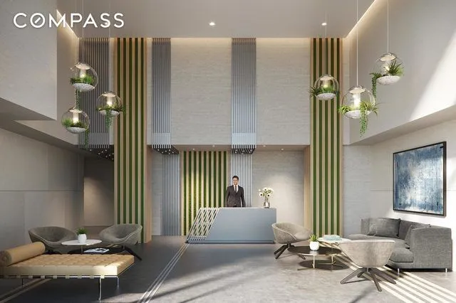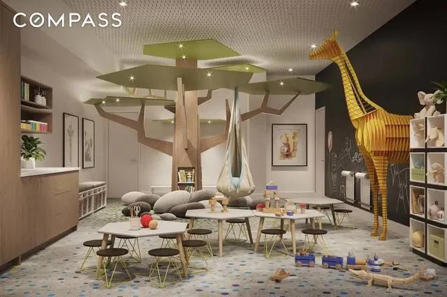 The building offers over 12,000 square feet of robust amenities that feel like a natural extension of your home. Enjoy a sprawling courtyard with a dog run, children’s playground, fire pit, and BBQ dining areas, plus a spectacular roof deck with Statue of Liberty and Manhattan skyline views. Indoor amenities include a double-height fitness center, yoga studio, a professional-quality music room, a modern resident lounge with co-working hubs, a billiards-equipped game room, and a creative children’s playroom.