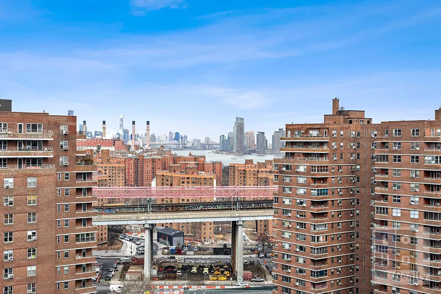 Experience breathtaking sunrises and sunsets in this expansive 3-bedroom, 2 full bath penthouse, offering panoramic views of the East River, the downtown Brooklyn skyline, and the soon-to-be-completed East River Park promenade and amphitheater. With 1,300 sq. ft. of indoor living space and a 275 sq. ft. private terrace, this home is perfect for entertaining or simply enjoying the beauty of the city. The sun-filled living room opens directly to the private terrace, creating an inviting space for gatherings or quiet relaxation. The primary bedroom features an en-suite full bath and access to an additional balcony, while two additional king-sized bedrooms provide ample space for family or guests. The home also includes a second full bath, a bright eat-in kitchen, a generous entry foyer, hardwood parquet flooring, and six closets, including a walk-in closet at the entry. With windows in every room, natural light and stunning views abound throughout the home. For those with renovation plans, the kitchen walls adjoining the living room and foyer can be partially or fully removed to create an open-concept layout, enhancing the already impressive flow of light and air.