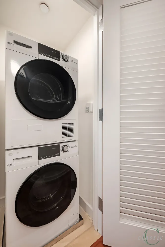 12A is a corner residence with sunny South and East Citу views from the floor-to-ceiling windows. The unit features Brazilian cherry hardwood plank flooring. The entry gallery hall leads into a spacious welcoming foyer. The bright windowed kitchen includes absolute black granite countertops and floors, white lacquer cabinetry, Miele range & dishwasher and a Subzero refrigerator. A wine cooler and a GE Microwave make the kitchen complete. The beige marble bathroom includes 2 under-mounted sinks with granite countertops and white lacquer vanities. There is a Kohler soaking tub with a glass enclosed shower and towel warmers as well. 12A includes a GE Profile WD for additional convenience. The unit has central heating and cooling.