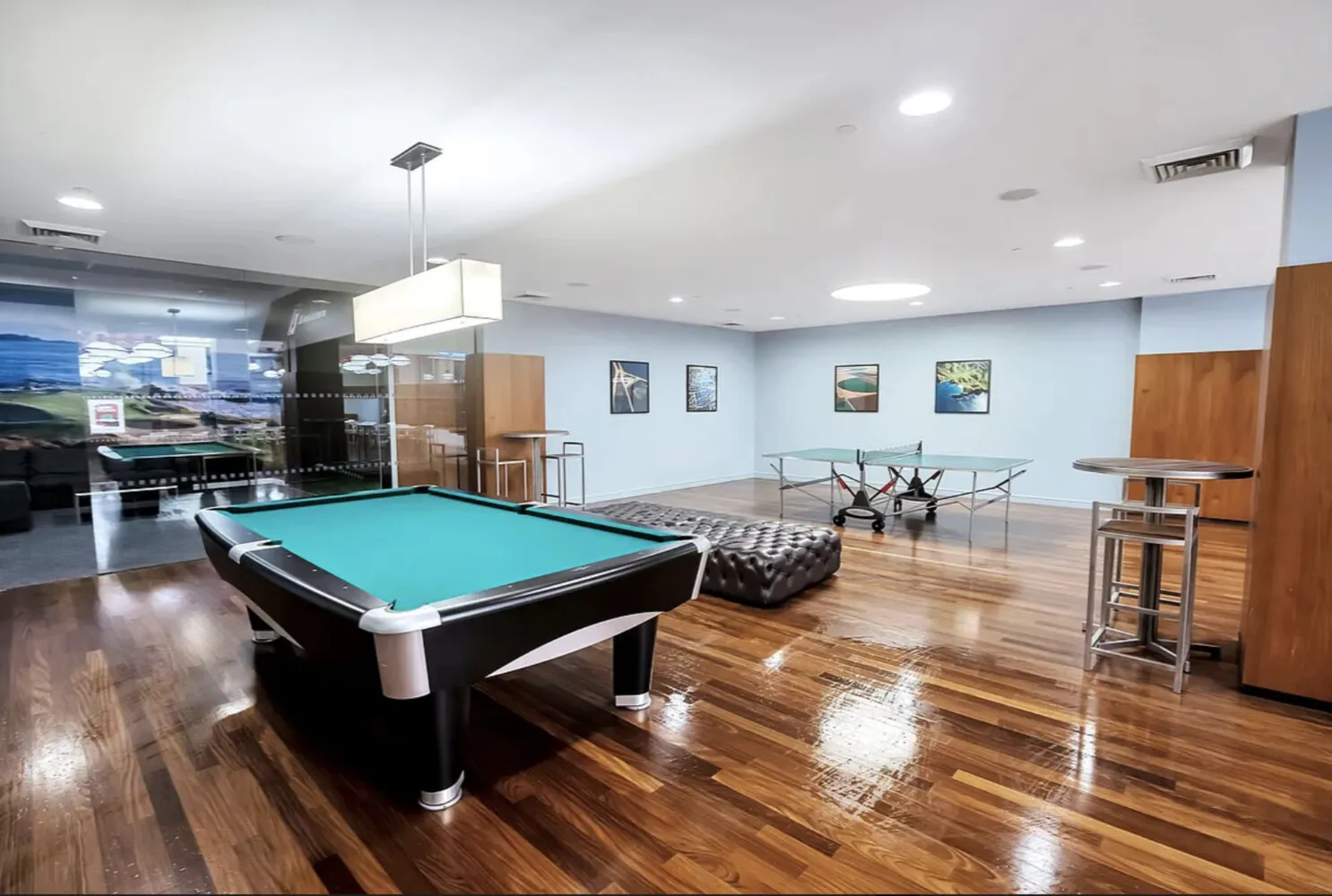The Aldyn is a luxury condominium with unparalleled amenities, including a 40,000 square feet gym with rock climbing, 2 lane bowling alley, an indoor swimming pool, spinning room, pilates room, kinesis room, ballet studio, billiards, ping pong, golf simulation room, squash court and one of the only full regulation basketball courts in the city. The building also has a function room, two cafeteria-style eating areas, an outdoor garden with hammocks and lounge chairs and garage.