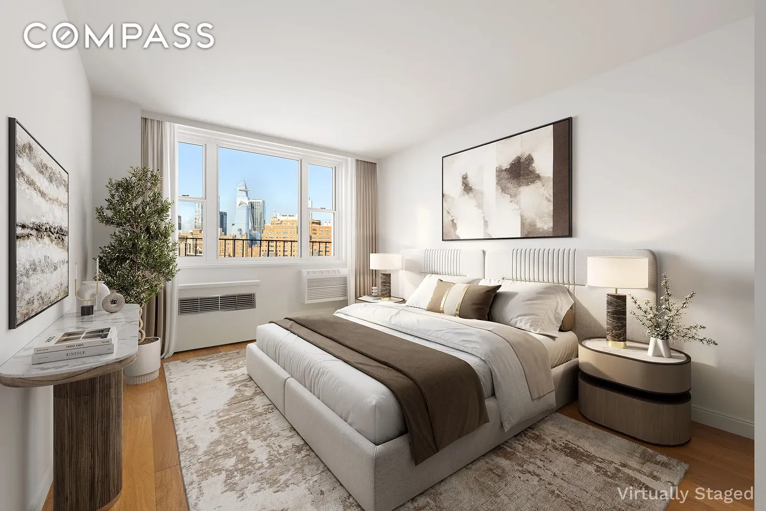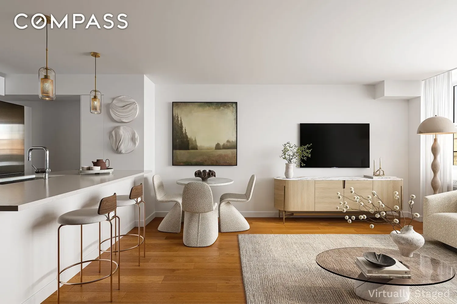Perched high above the West Village on the 19th floor, this one bedroom offers sweeping, open vistas of historic Meatpacking District with engaging glimpses of the Hudson River. Whether in bed with coffee or watching the city sparkle after dark, 19J delivers a truly dynamic visual experience.