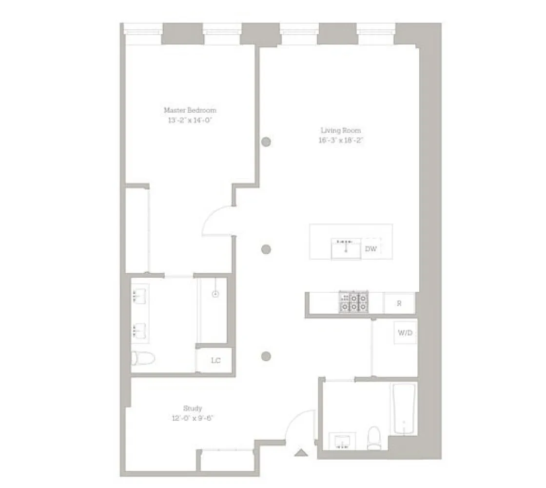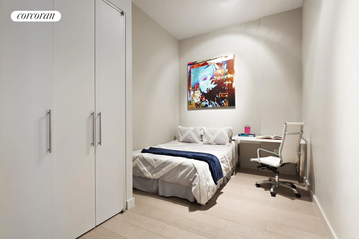 This recently renovated home seamlessly blends classic loft proportions with modern convenience. Soaring high ceilings, oversized windows, and expansive wall space create an airy, light-filled atmosphere throughout. The generously scaled living room easily accommodates multiple seating areas and flows into an open kitchen layout, ideal for both everyday living and entertaining. In addition to the oversized primary bedroom, the apartment features a separate home office or nursery, making the layout both flexible and functional.