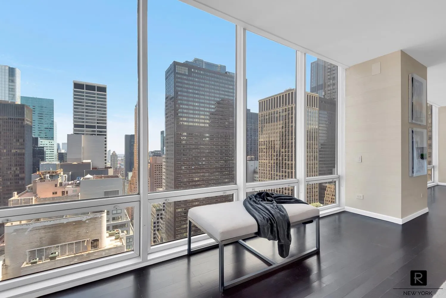 Situated on the 26th floor, this elegant home offers breathtaking panoramic views of the NYC skyline, Central Park, and stunning open city views - all beautifully framed by floor-to-ceiling windows in every room.