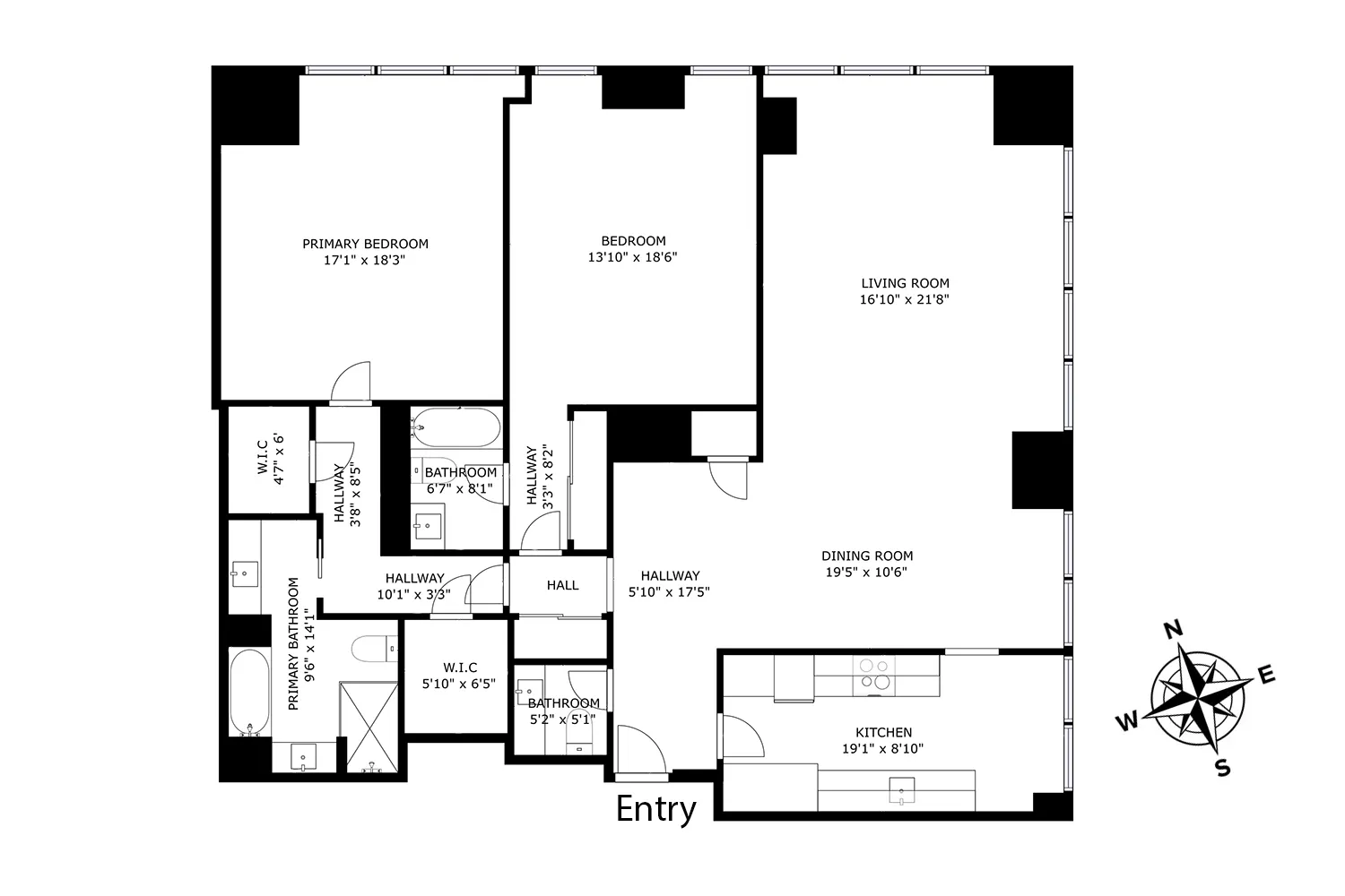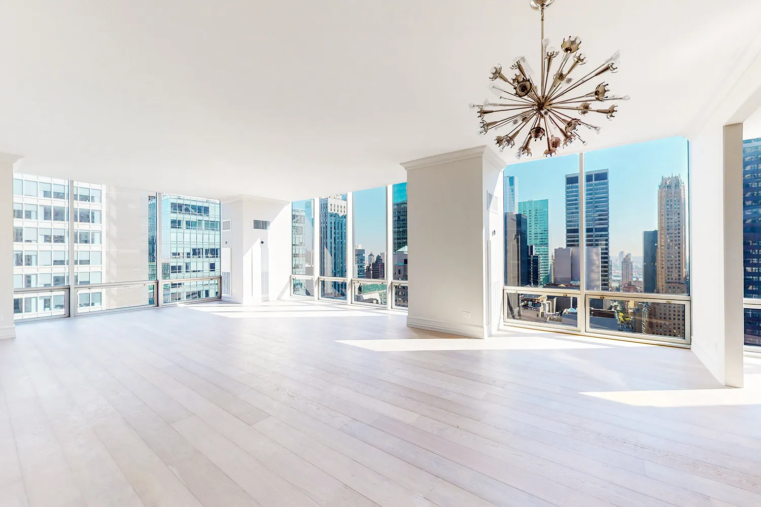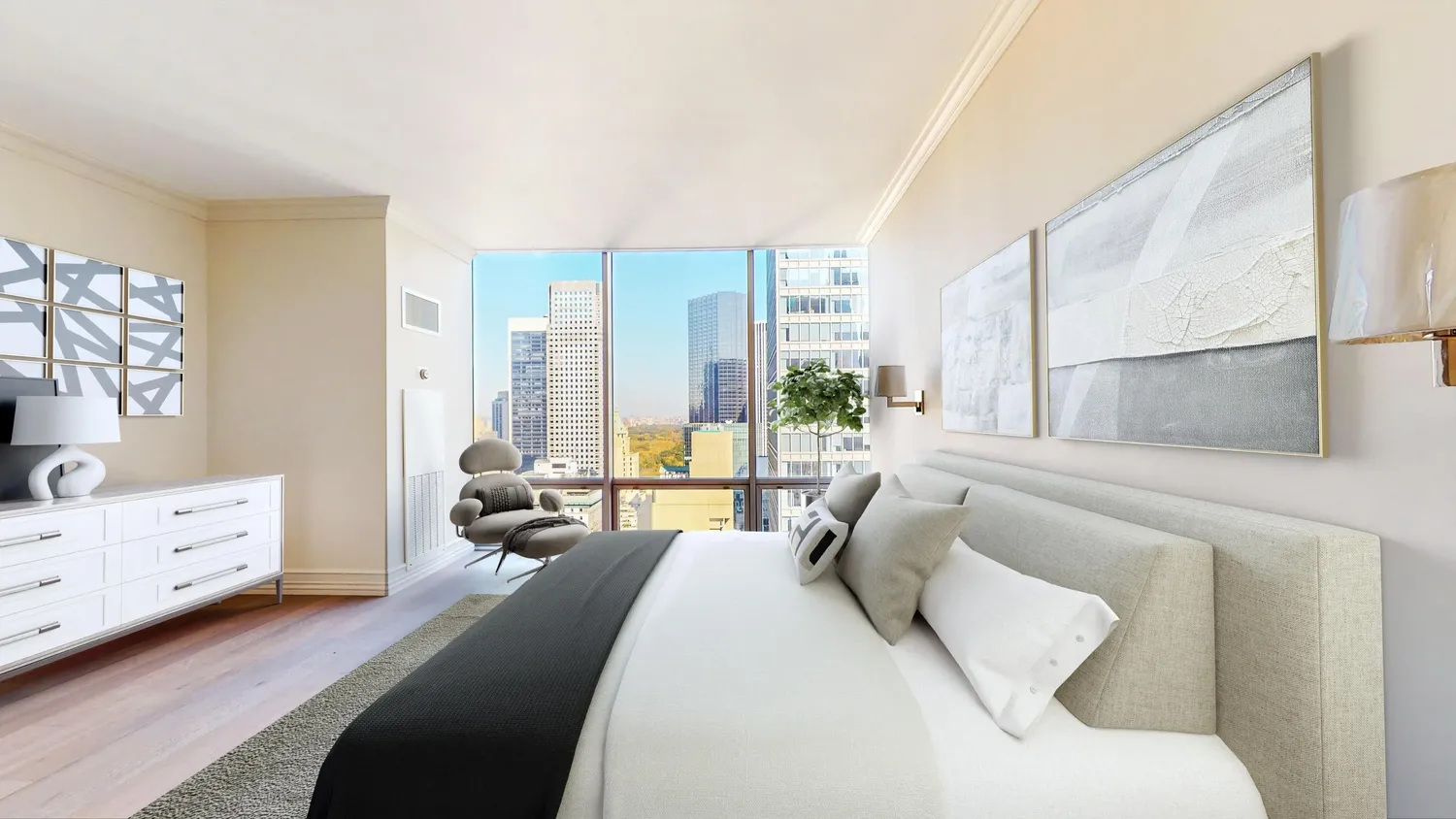 Perched high in the iconic Olуmpic Tower, this approx. 1,800 sq ft corner 2BR/2.5BA has been fully renovated and wrapped in floor-to-ceiling windows with sweeping North/East views of Central Park, the Manhattan skyline, and all the way toward the East River; a gracious foyer opens to an impressively wide living and dining expanse ideal for entertaining or unwinding above Midtown, while both bedrooms enjoy serene park outlooks. The spacious primary suite offers extensive custom storage and a refined marble en-suite bath, complemented by a second full bathroom with a deep soaking tub plus a powder room for guests. A sleek, updated kitchen features stainless-steel appliances and streamlined cabinetry, and the home includes an in-unit washer/dryer, new wide-plank hardwood floors throughout, and upgraded HVAC systems—delivering a truly turnkey residence in one of Manhattan’s most recognized full-service addresses.