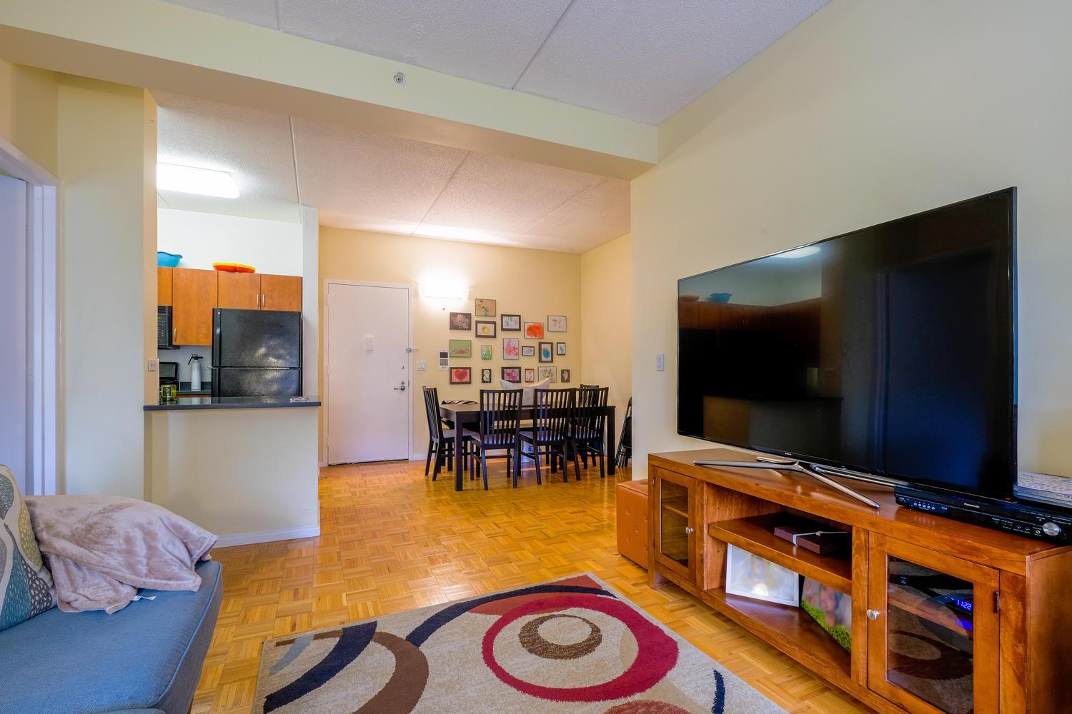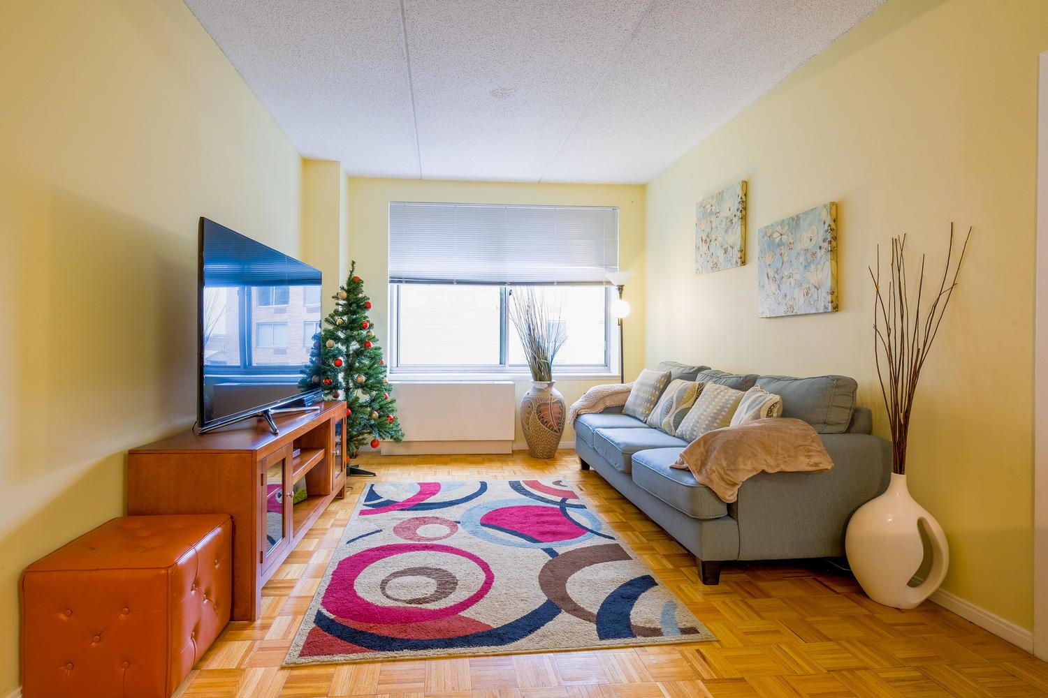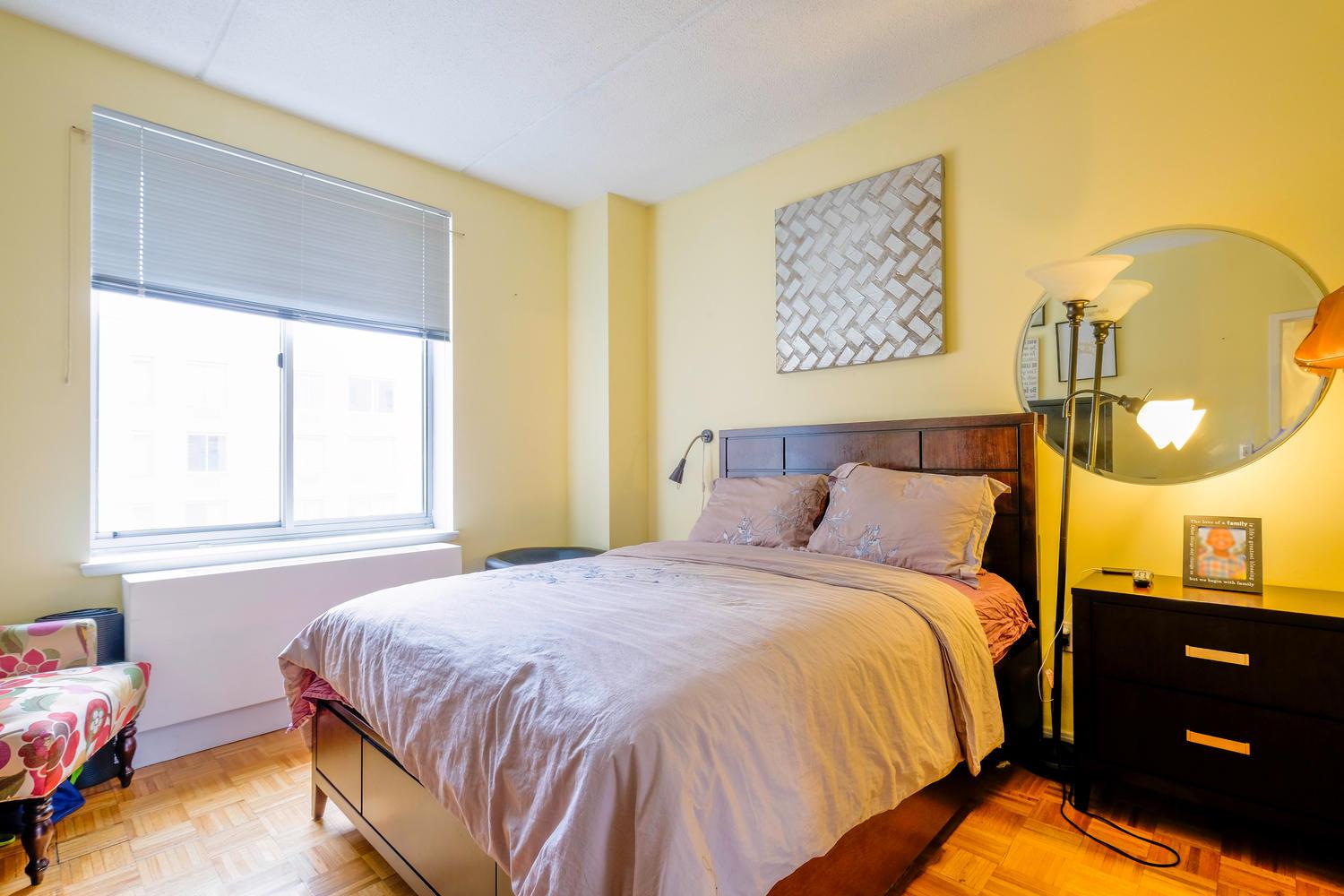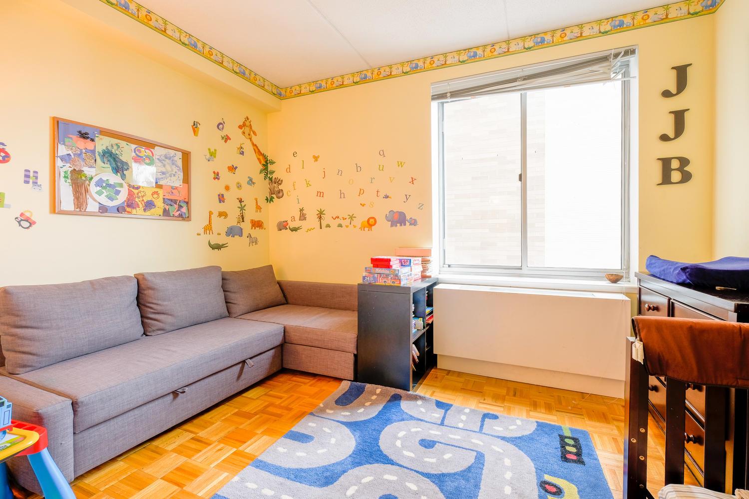 Amenities in this luxury elevator doorman building include a 24-hour attended lobby, state of the art gym, landscaped courtyard with a play structure for children, bike room, laundry room, and a parking garage. This pet friendly building is located directly across from the Jackie Robinson Park, which carries the designation of a historic Harlem park and features basketball courts, baseball diamonds, volleyball courts, swimming pool, and two playgrounds. The park also plays host to musical concerts in the summer. Other tenants of the building include Starbucks, NYSC, and Bank of America.