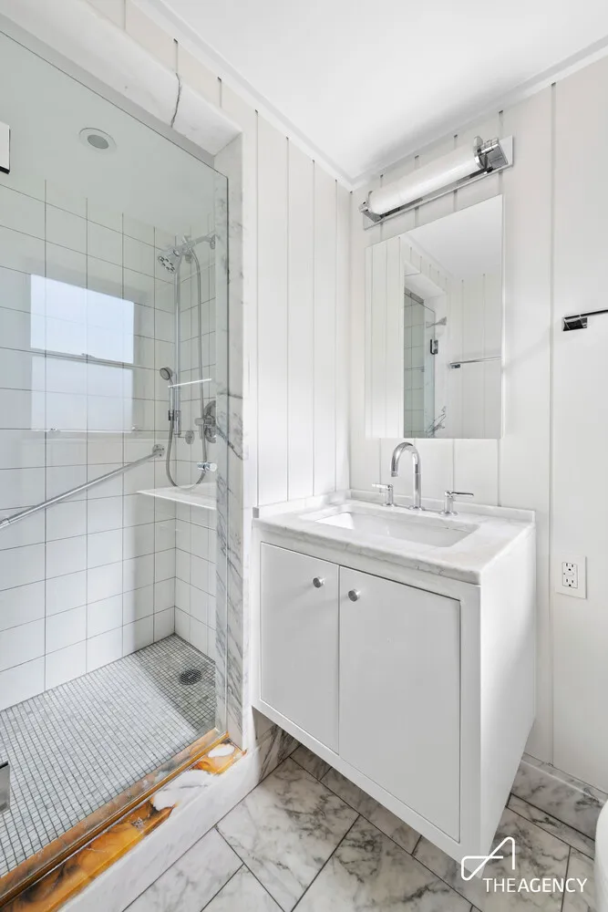 The thoughtfully designed layout offers two well-proportioned bedrooms, including a serene primary suite, along with extraordinary closet space throughout-an increasingly rare luxury-providing exceptional storage and organization. The renovated chef's kitchen flows seamlessly into the beautiful dining area. Stressful day ahead or behind? Shake it off when you step outside to your private terrace, an inviting extension of the living space overlooking Grace Church, ideal for morning coffee, evening unwinding, or al fresco dining. This residence is truly move-in ready, blending comfort, scale, and functionality with timeless appeal.