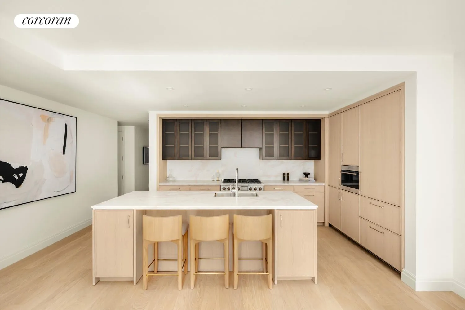 A grand entry foyer welcomes you to Residence 5M. Boasting a custom Italian kitchen by Boffi featuring a hand selected honed Namibia Rose marble countertop and backsplash, white oak cabinetry, fluted, reflective bronze upper doors and Waterworks polished chrome hardware. Professional-grade appliances include Sub-Zero refrigerator, Wolf range, Wolf speed oven, wine fridge, and Cove dishwasher. A spacious mudroom can be found adjacent to the grand entry foyer. No expense has been spared.