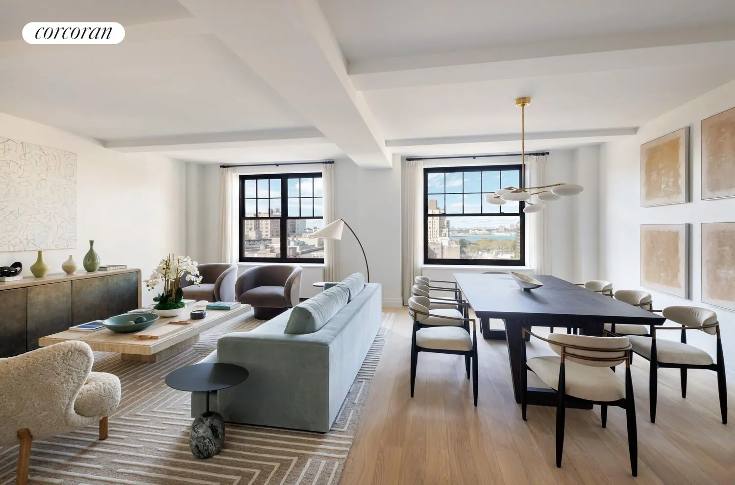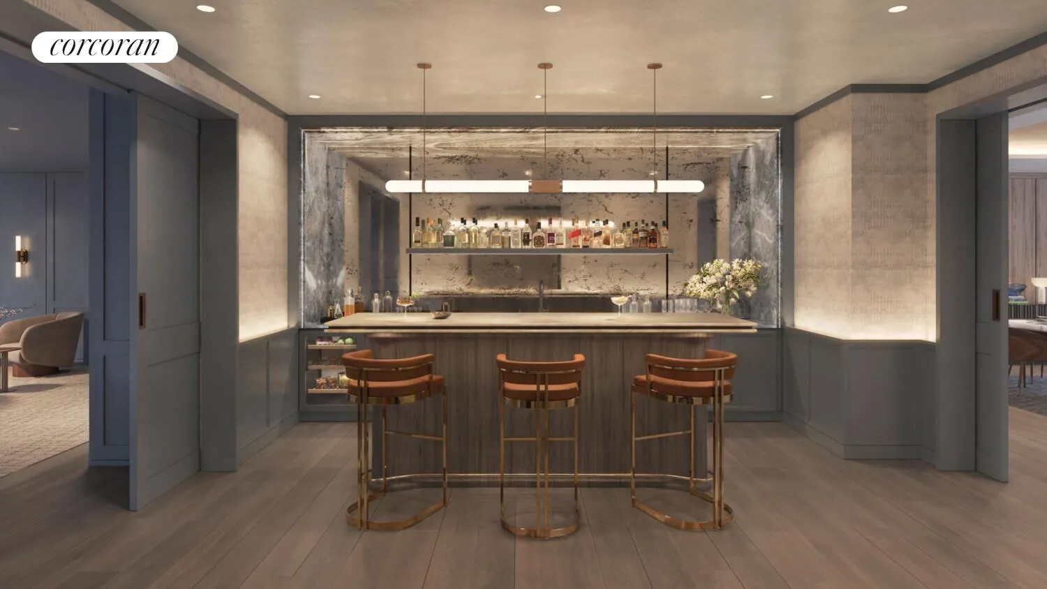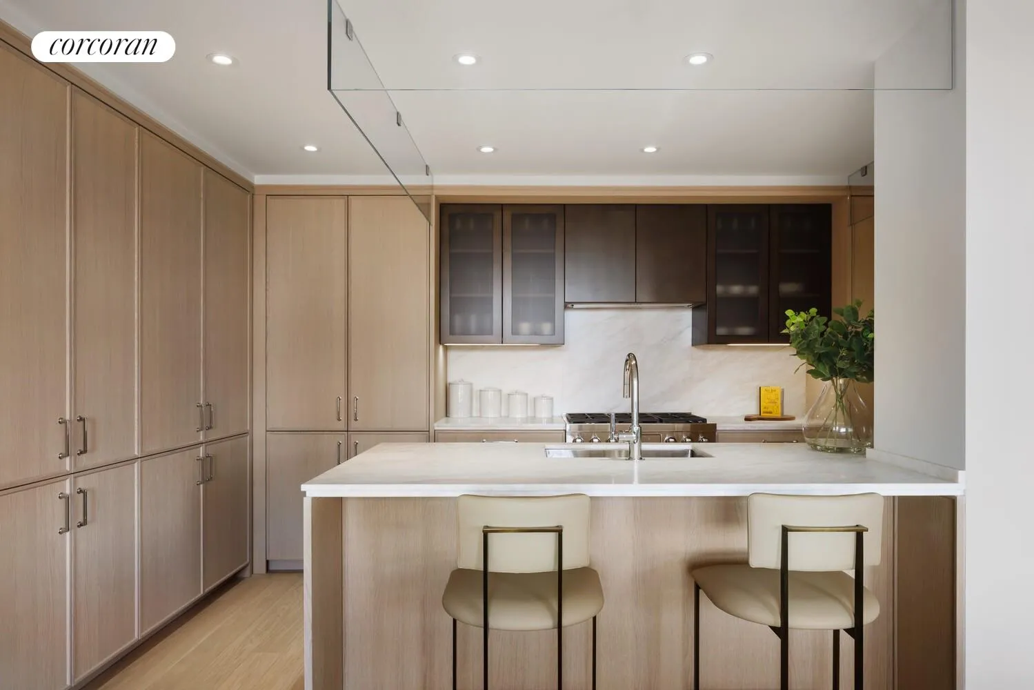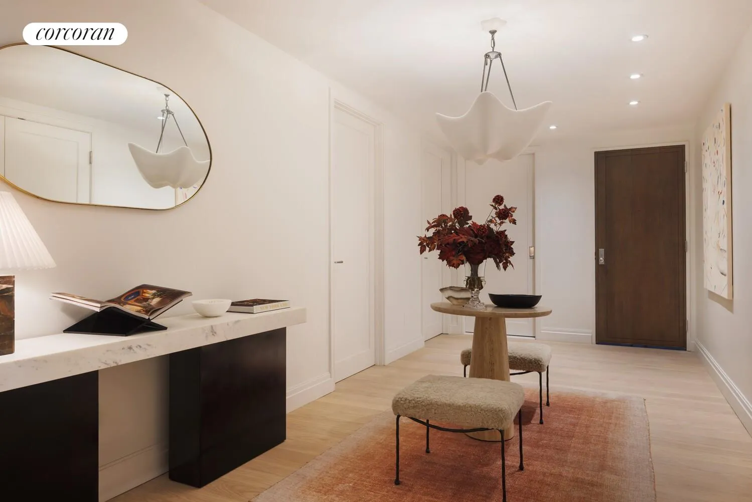 A grand entry foyer welcomes you to Residence 9A. Boasting a custom Italian kitchen by Boffi featuring a hand selected honed Namibia Rose marble countertop and backsplash, white oak cabinetry, fluted, reflective bronze upper doors and Waterworks polished chrome hardware. Professional-grade appliances include Sub-Zero refrigerator, Wolf range, Wolf speed oven, Wolf steam oven, Sub-Zero wine fridge, and Cove dishwasher. A spacious mudroom can be found adjacent to the grand entry. No expense has been spared.